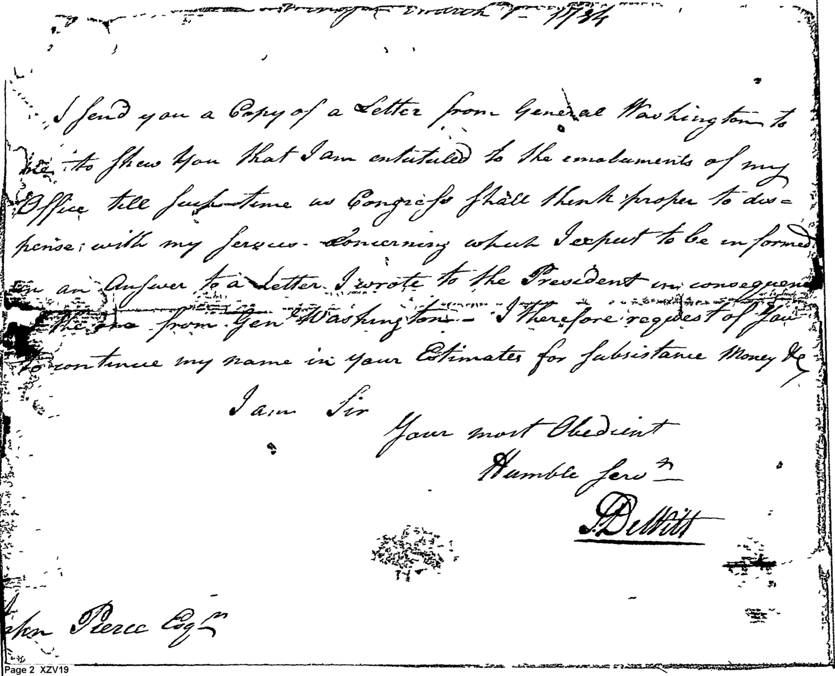 - Document: Washington's View on De Witt's Discharge