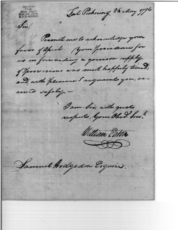 Post Revolutionary War Papers, 1784-1815. (RG94)