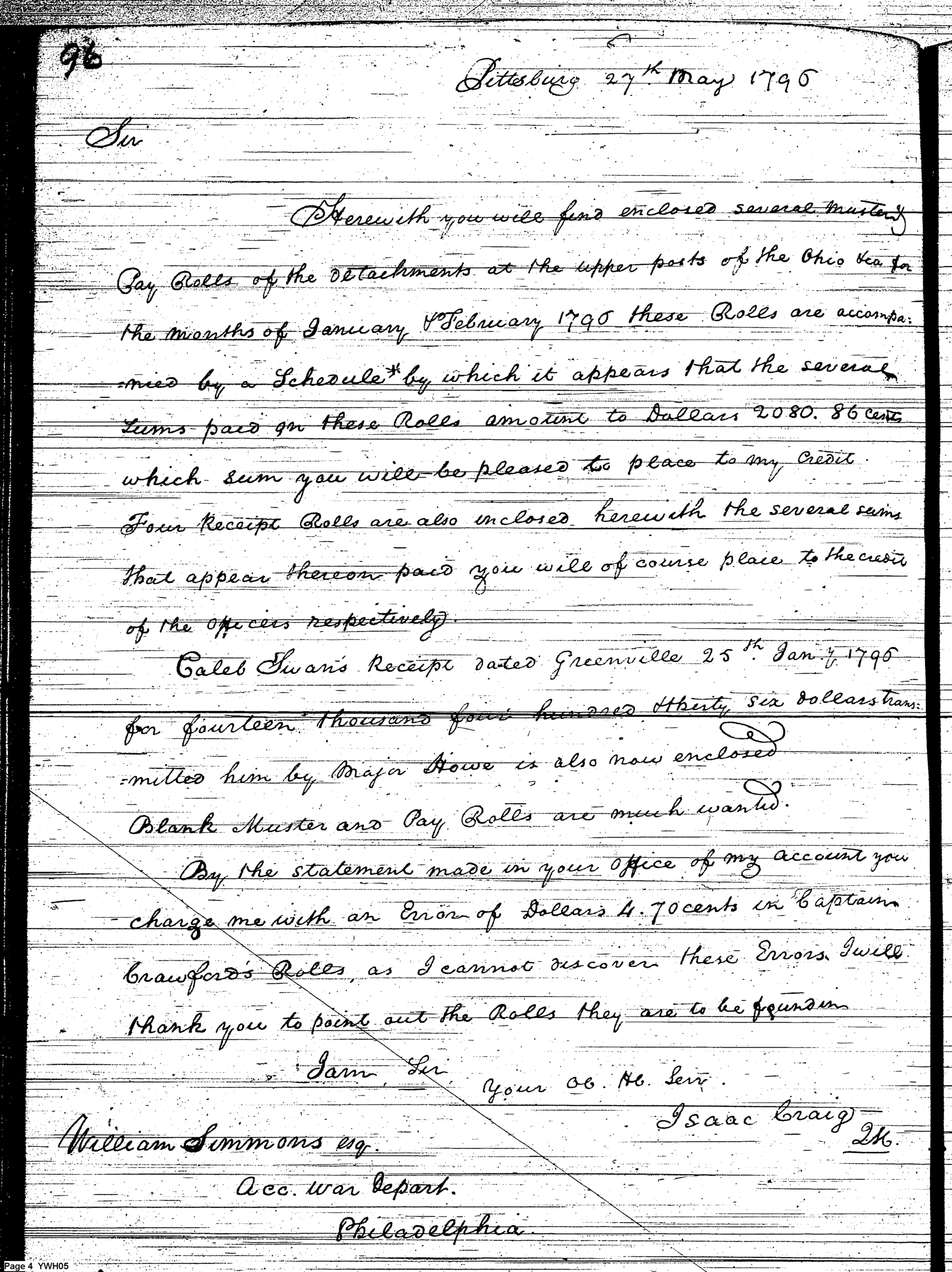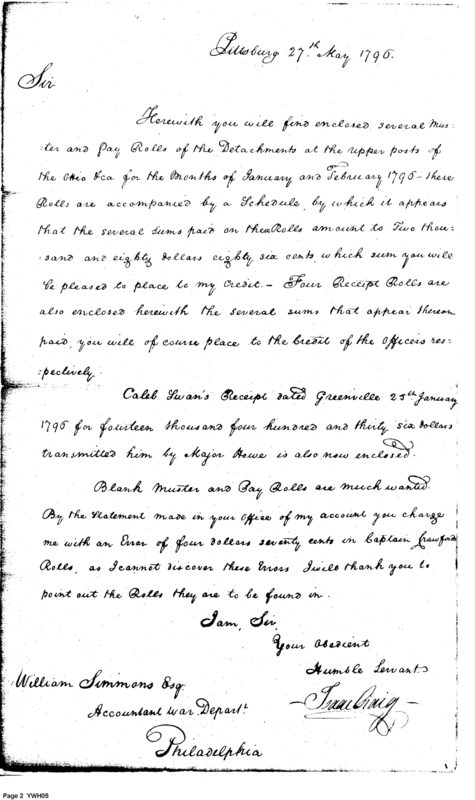 - Document: Major Craig discusses pay and accounting with William Simmons