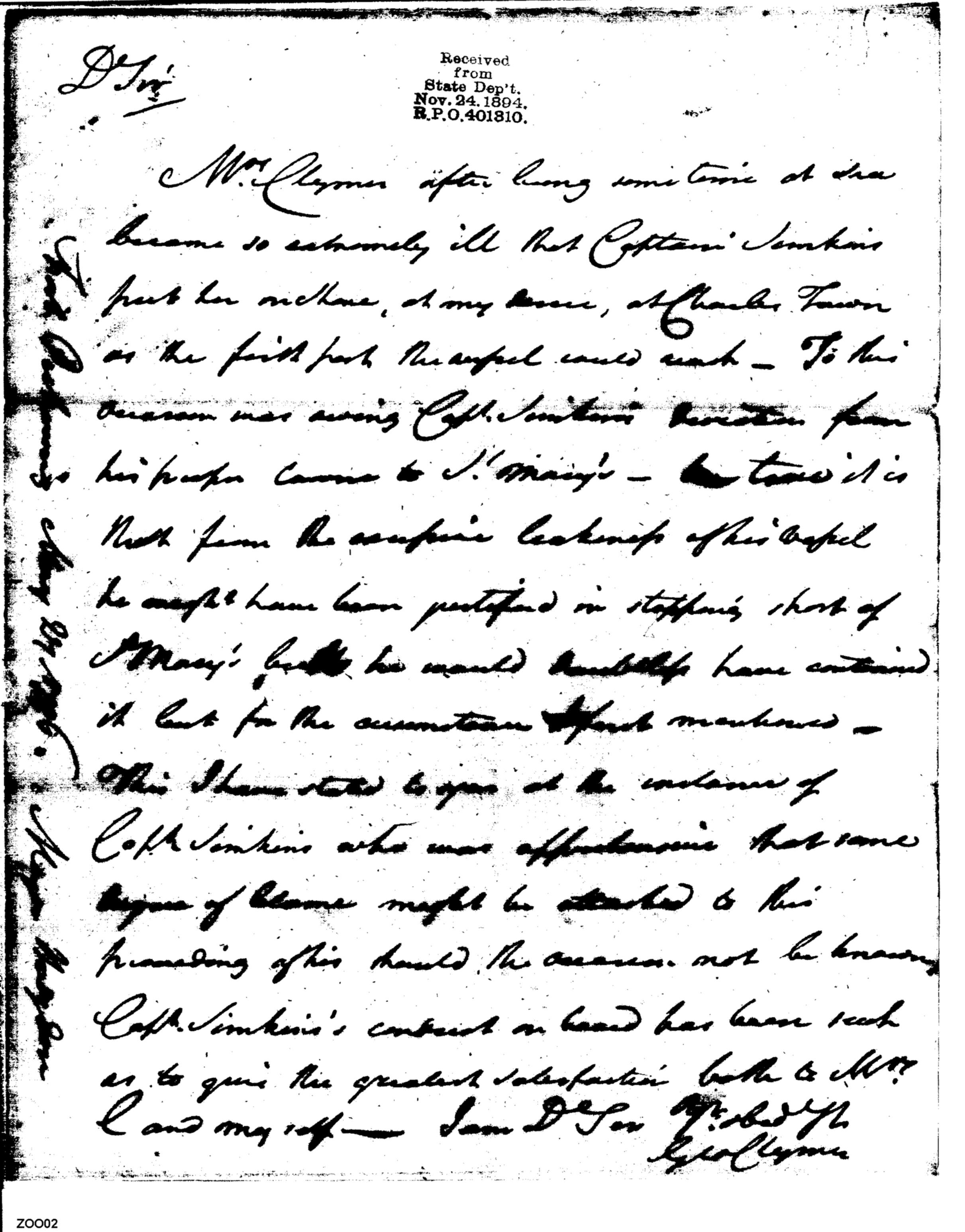 Document ViewerReports Delay for Captain Simkins's Arrival at St. Mary's