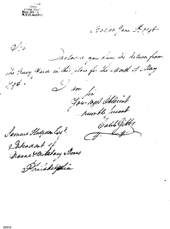 - Document: Submission of Returns for May 1796 for the Boston Navy Yard