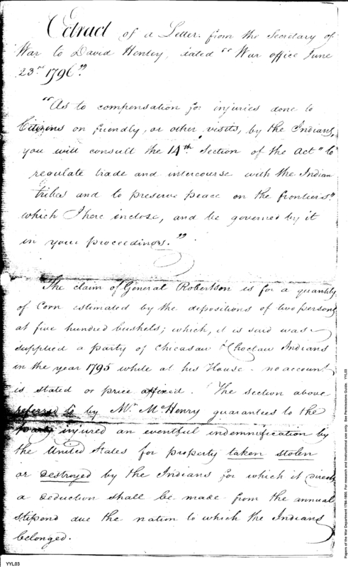 Document ViewerExtract of letter from Secretary of War to David Henley on claims and compensation for Indian damage