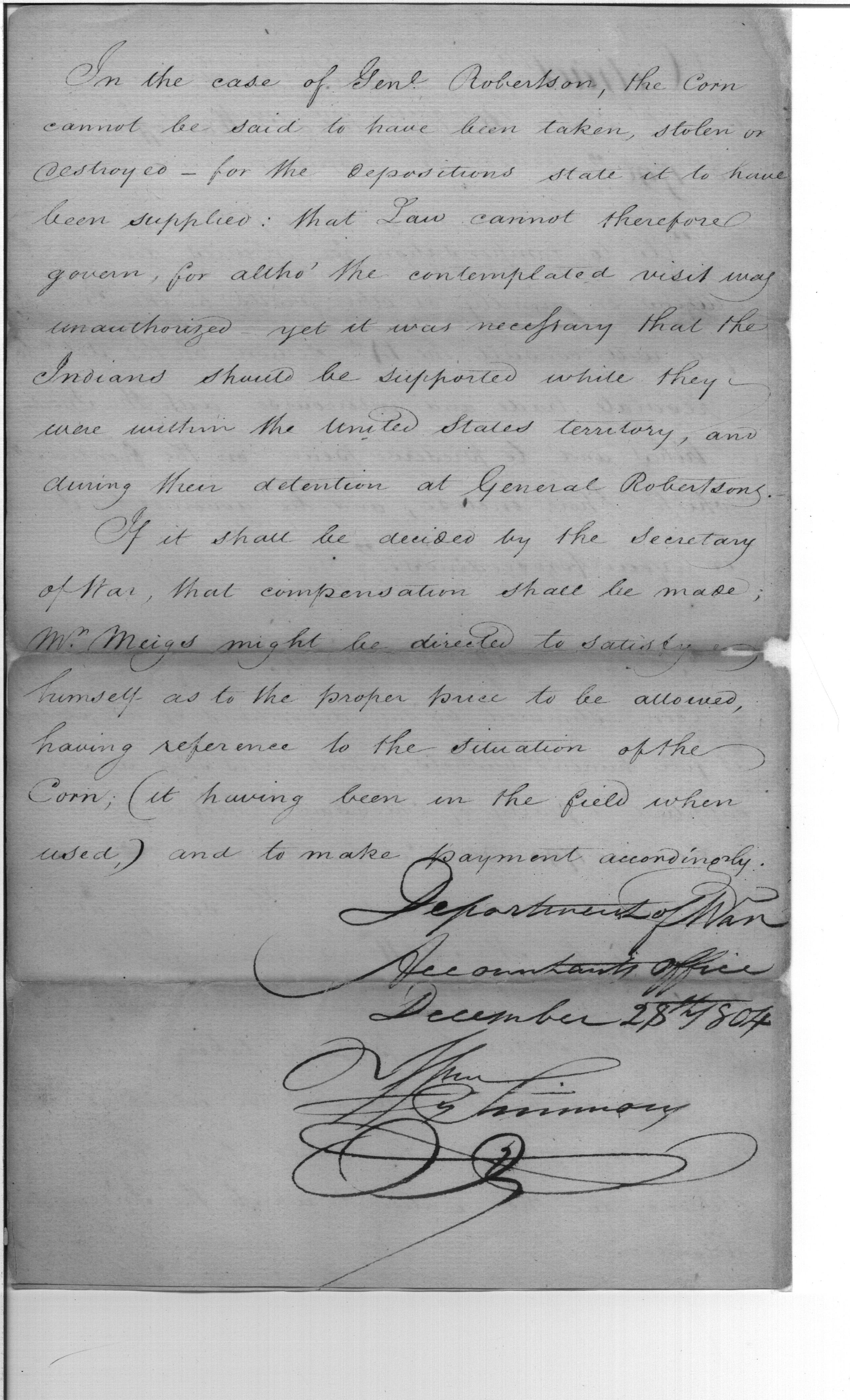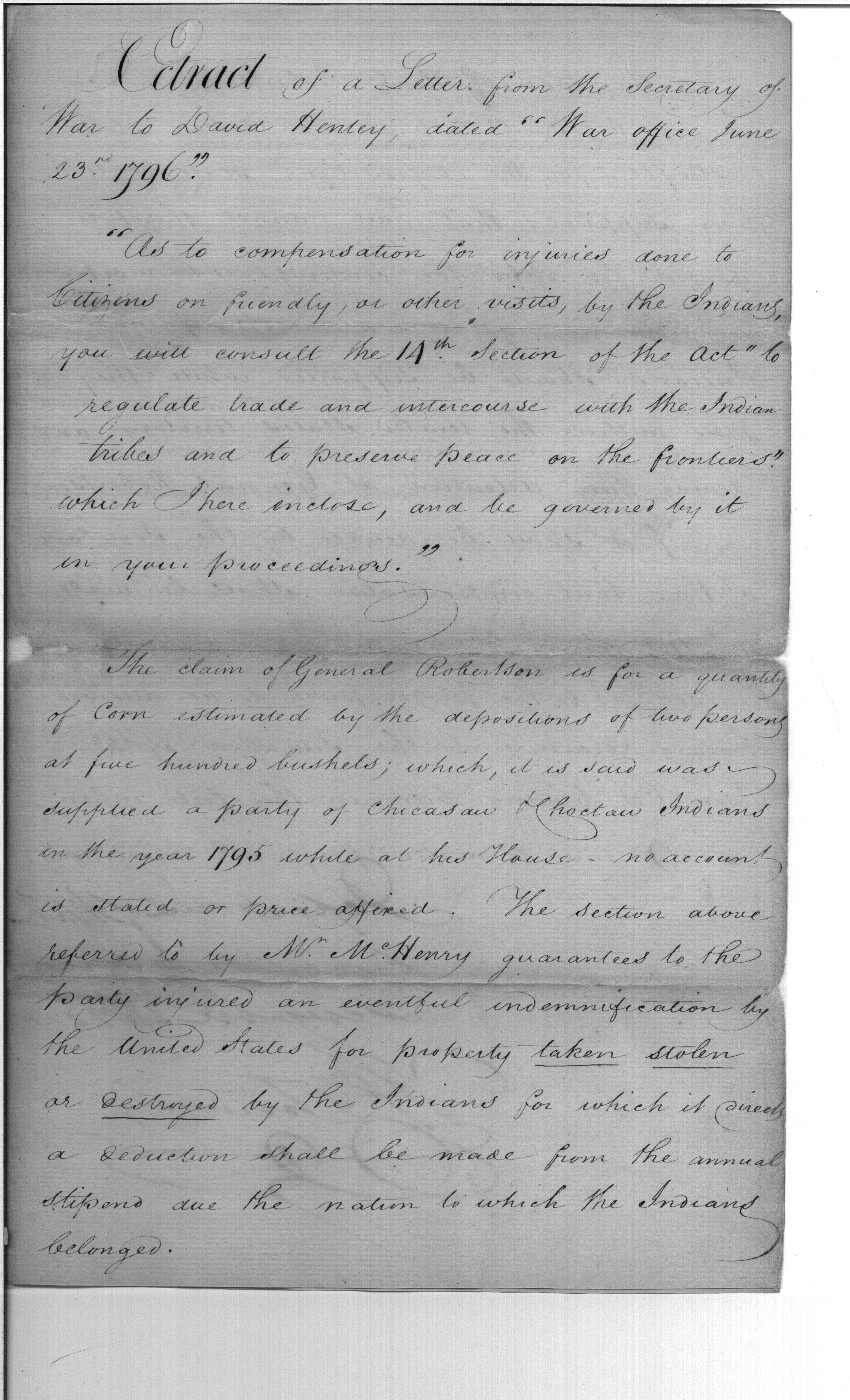 - Document: Extract of letter from Secretary of War to David Henley on claims and compensation for Indian damage