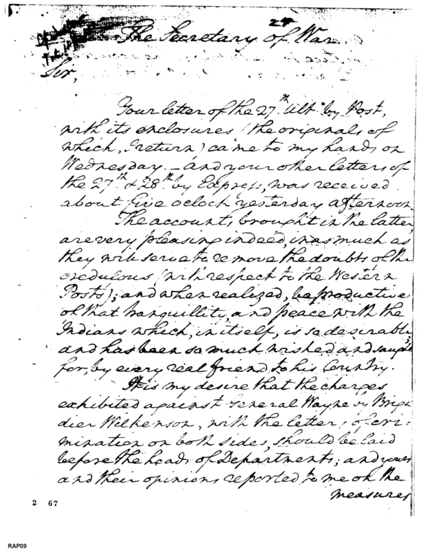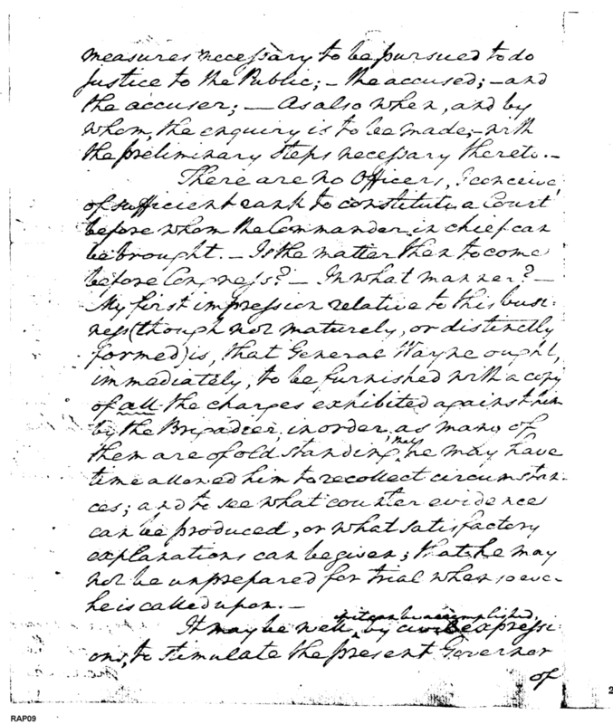 - Document: Outlines Appropriate Action in regard to Charges by Brigadier Wilkinson against General Wayne