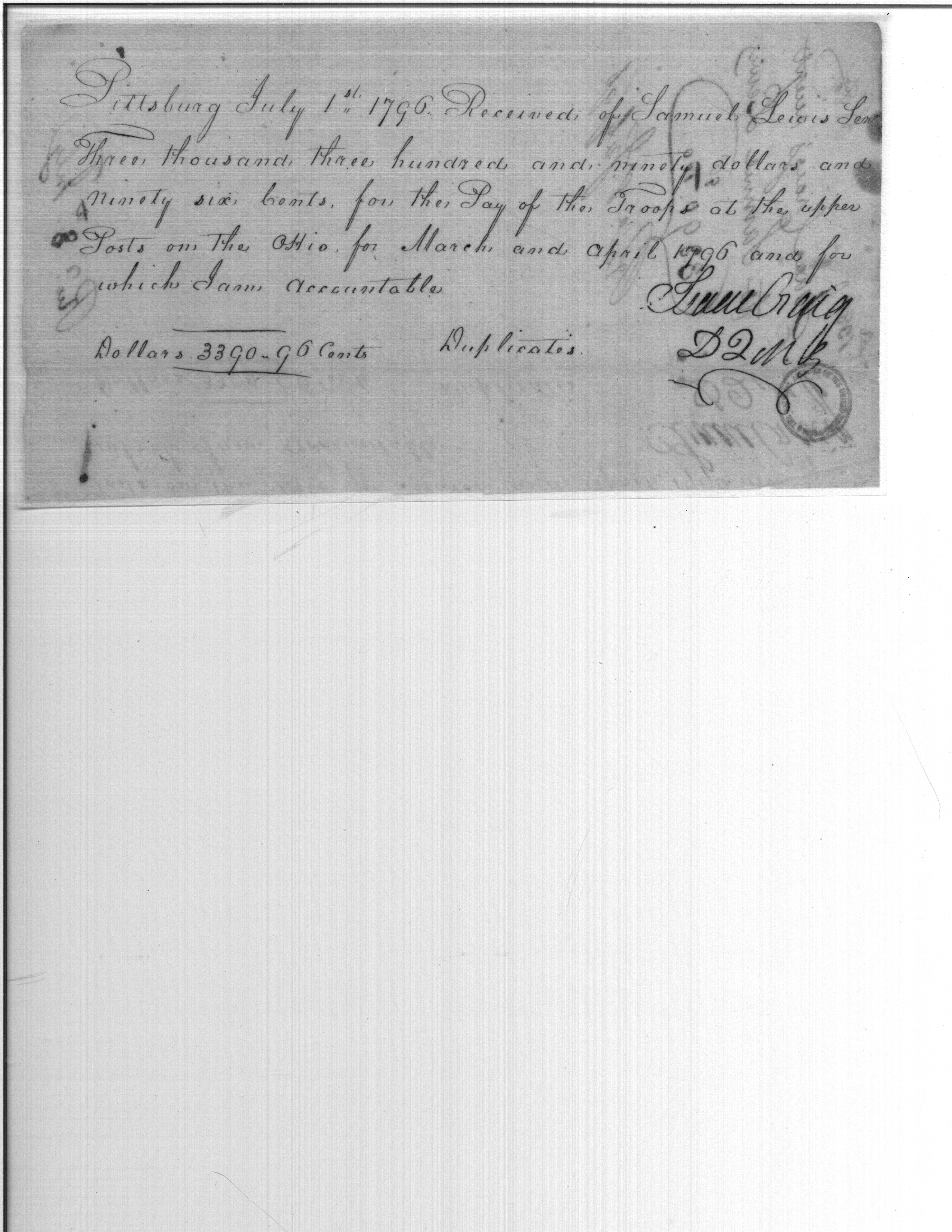 - Document: Receipt for Pay for Troops at the Upper Posts of Ohio