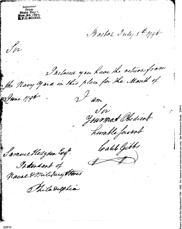 - In source: Collection: Post Revolutionary War Papers, 1784-1815. (RG94)