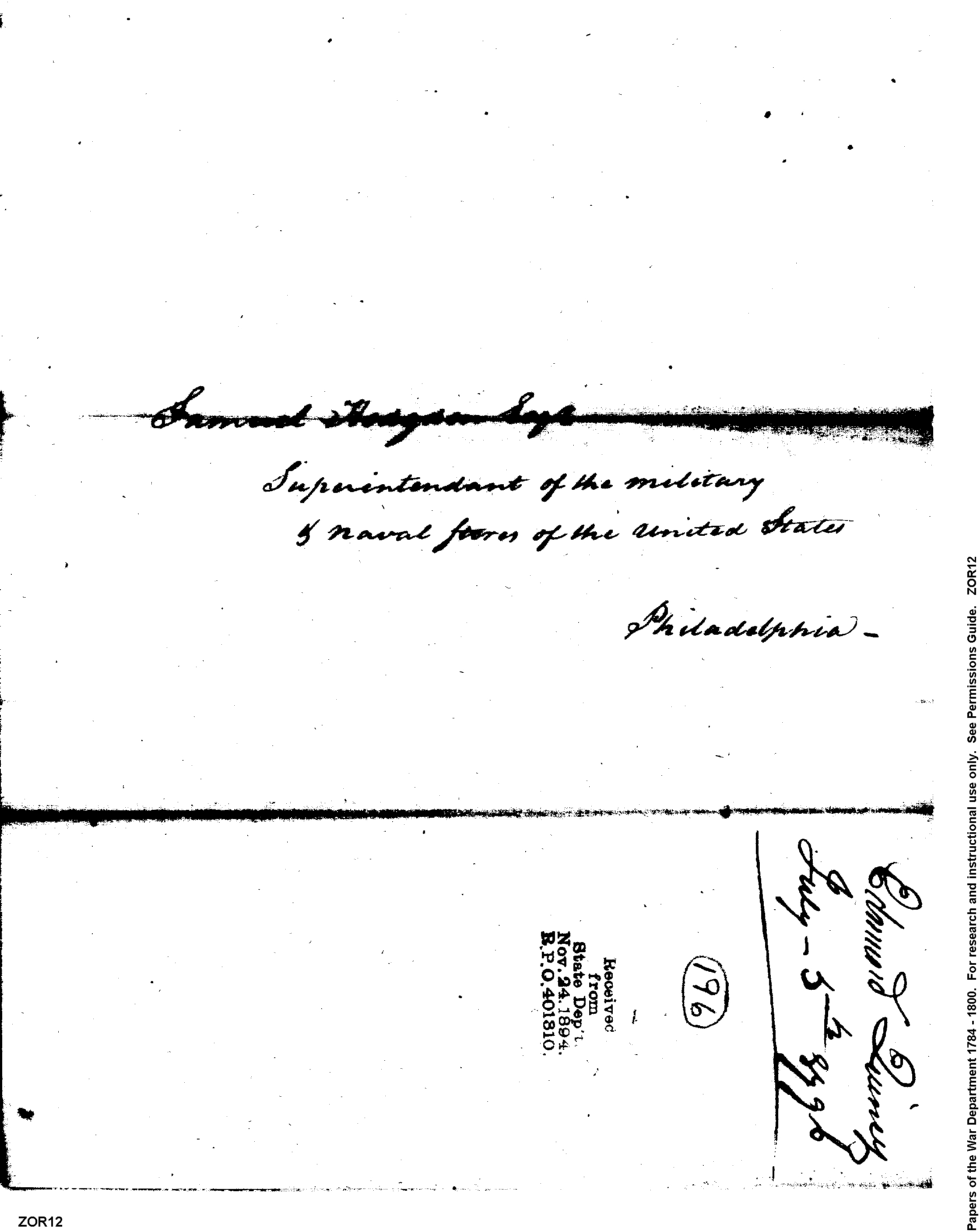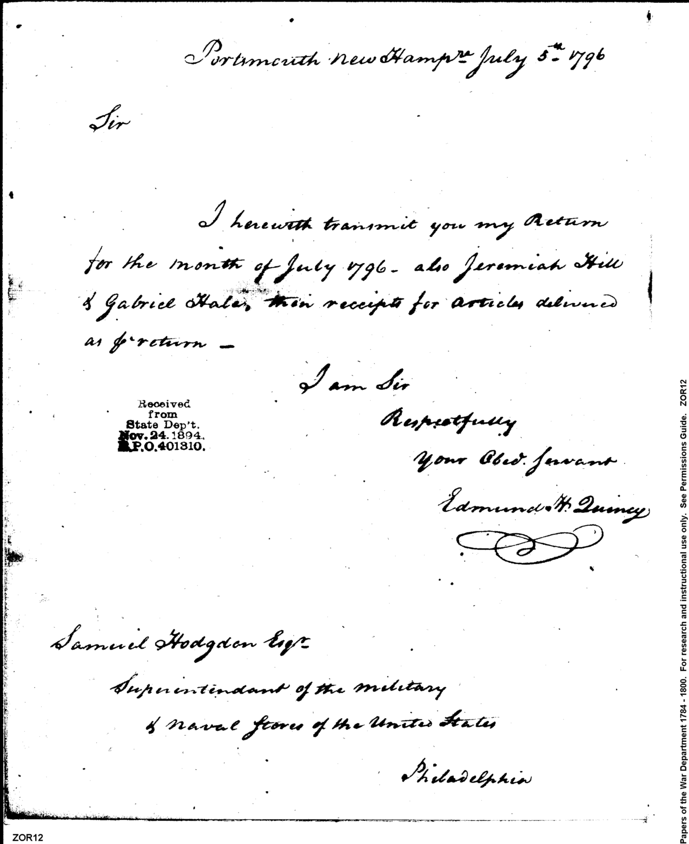 Document ViewerMy Return for July 1796, Etc.