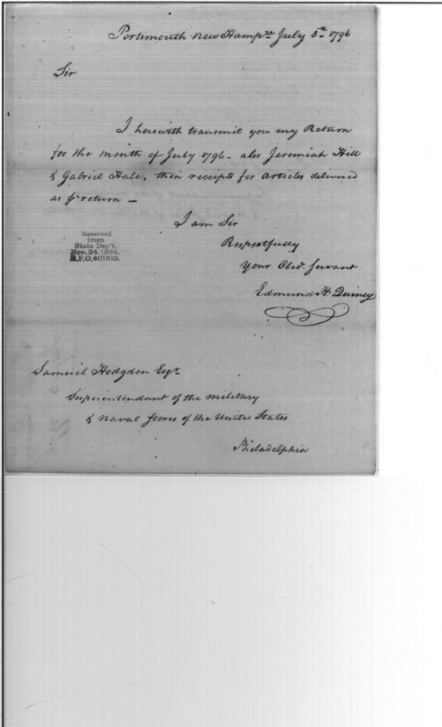 My Return for July 1796, Etc.