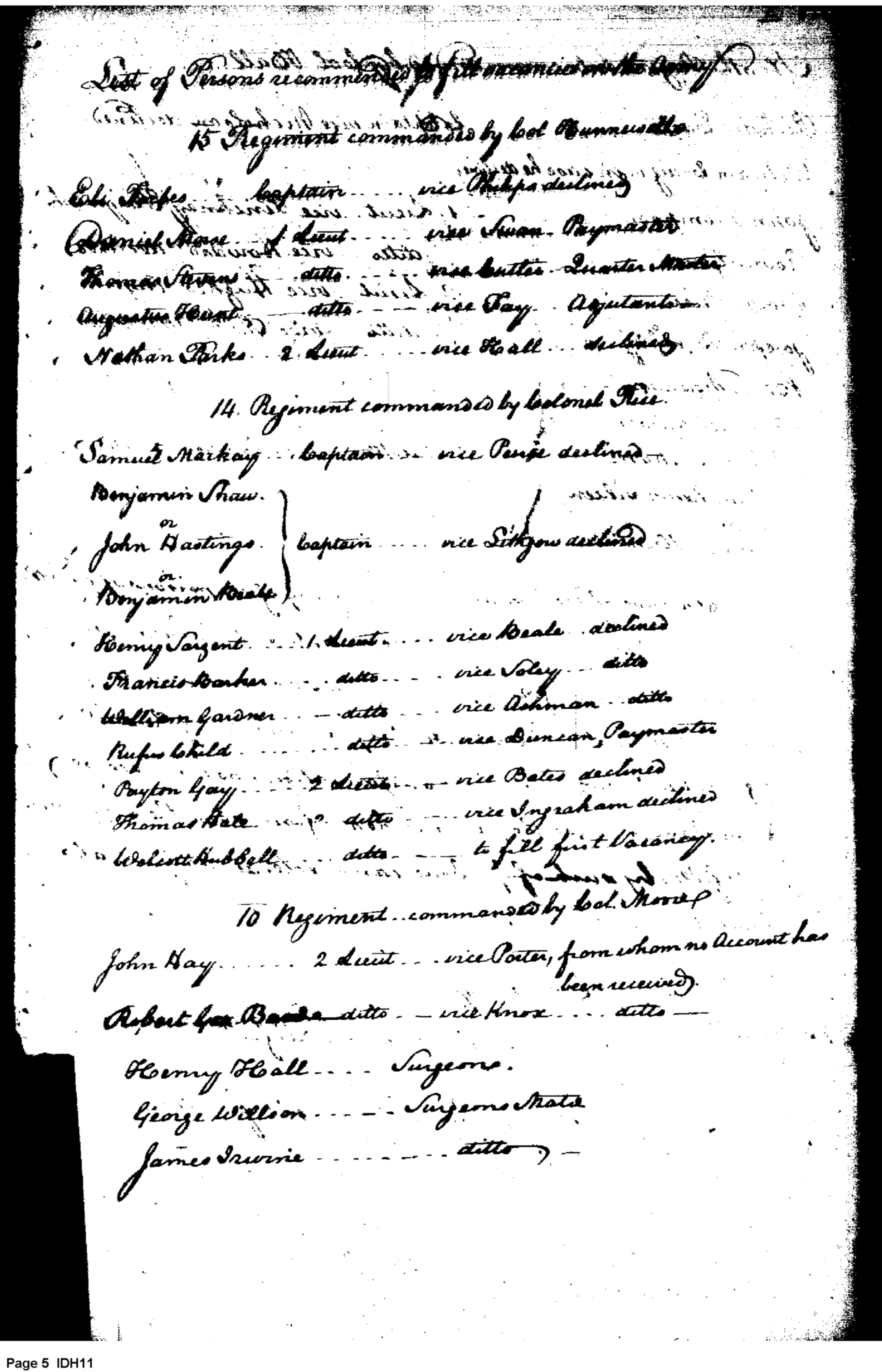 - Document: Submission of List of Officer Appointees for 9th, 10th, 14th, & 15th Regiments