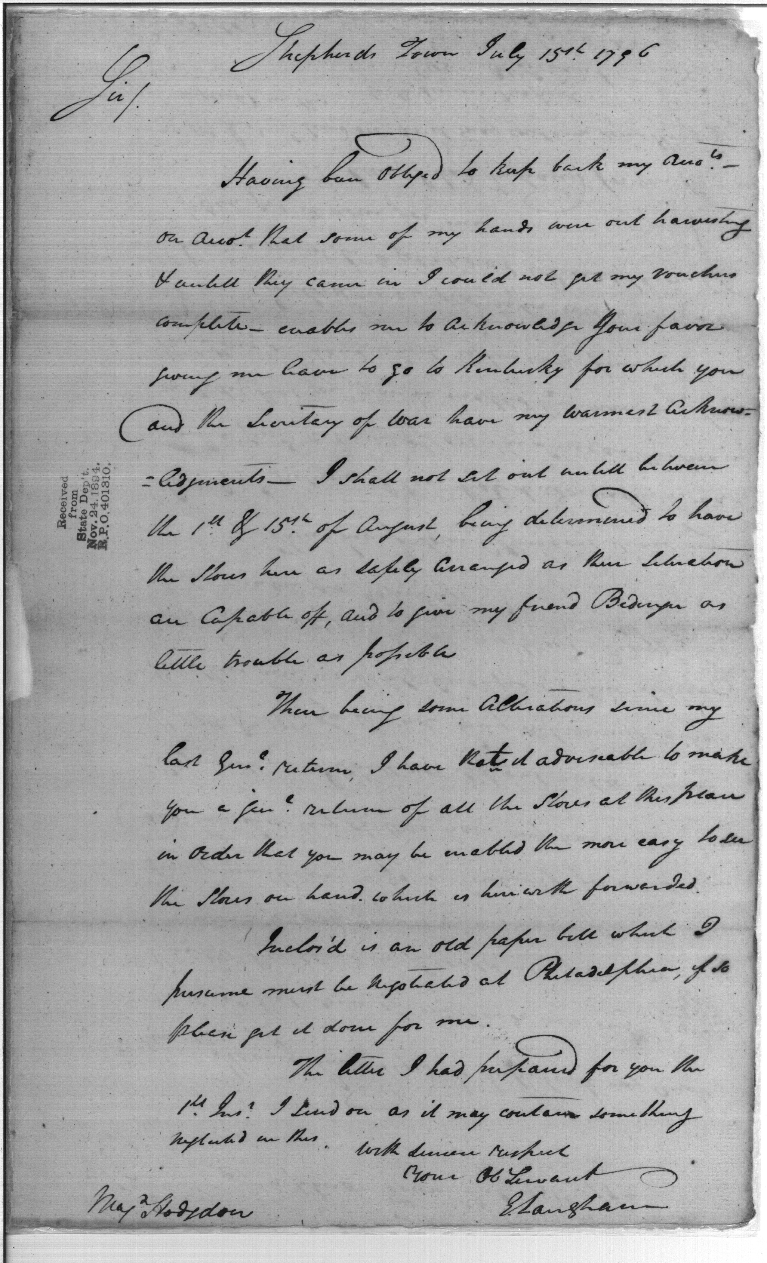 - In source: Collection: Post Revolutionary War Papers, 1784-1815. (RG94)