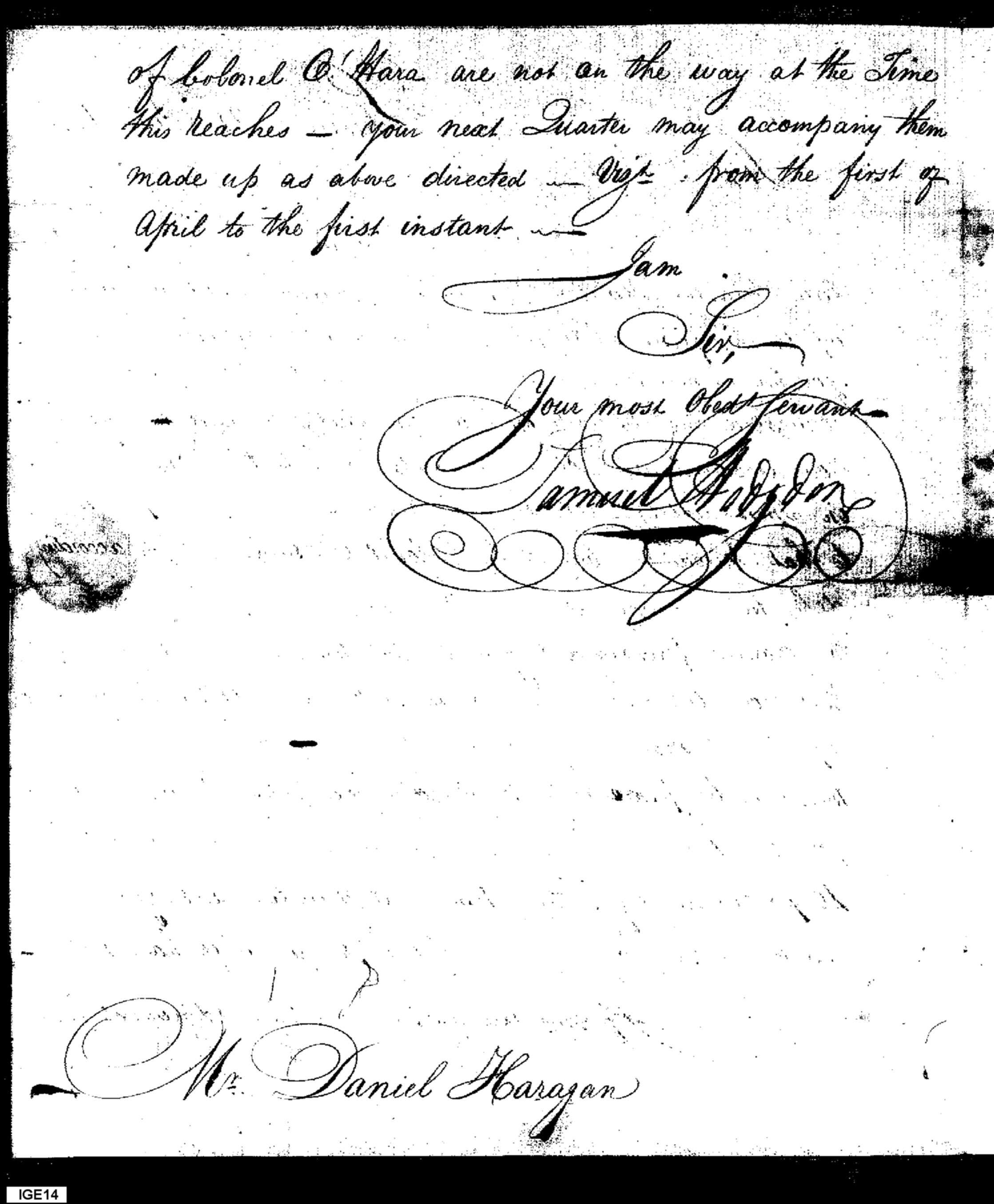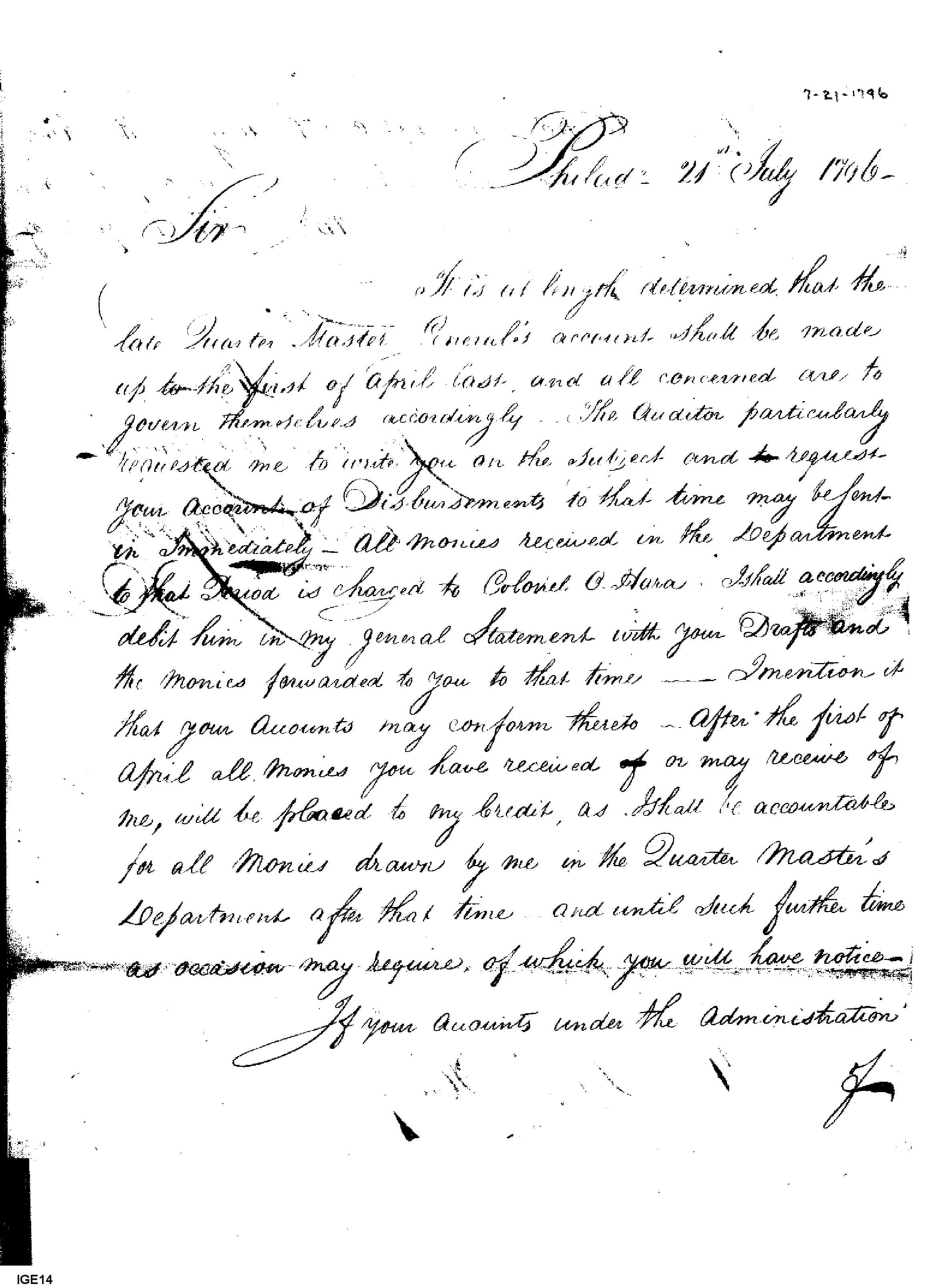 - Document: Request for Correct Accounting to the Quarter Master