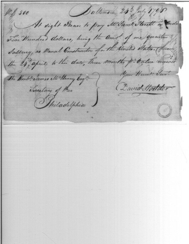 - Document: Payment to Samuel Sterett as Naval Constructor