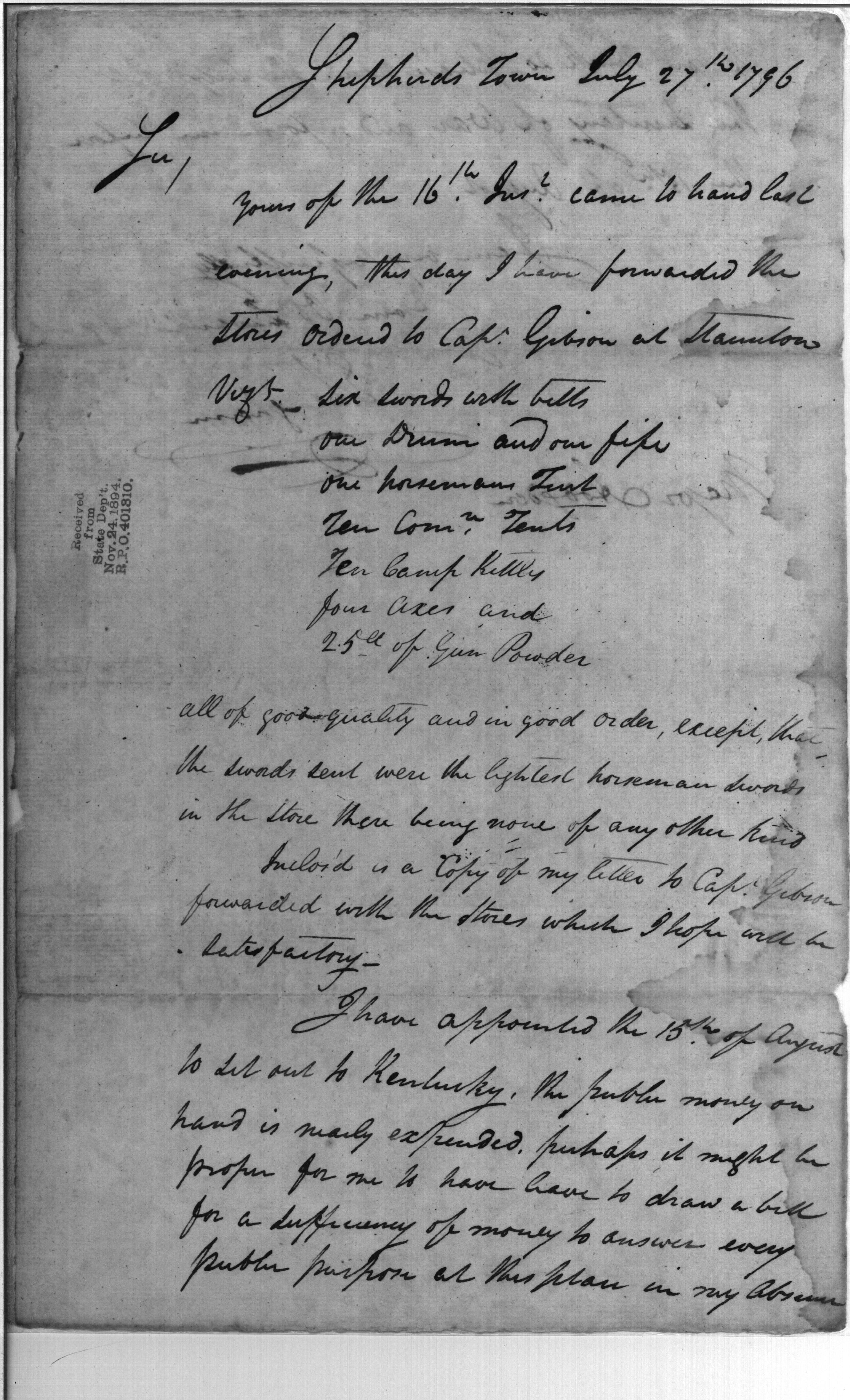 - In source: Collection: Post Revolutionary War Papers, 1784-1815. (RG94)