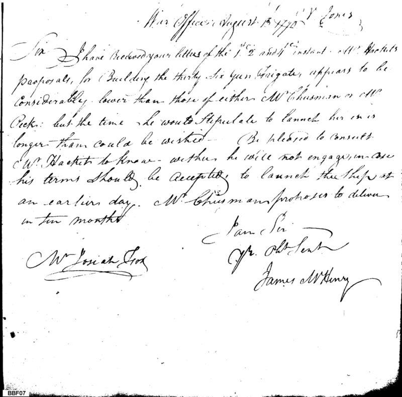 Document ViewerDiscussion of Construction Costs for 36-Gun Frigate