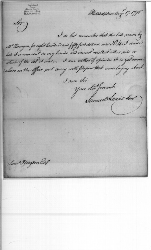 - In source: Collection: Post Revolutionary War Papers, 1784-1815. (RG94)