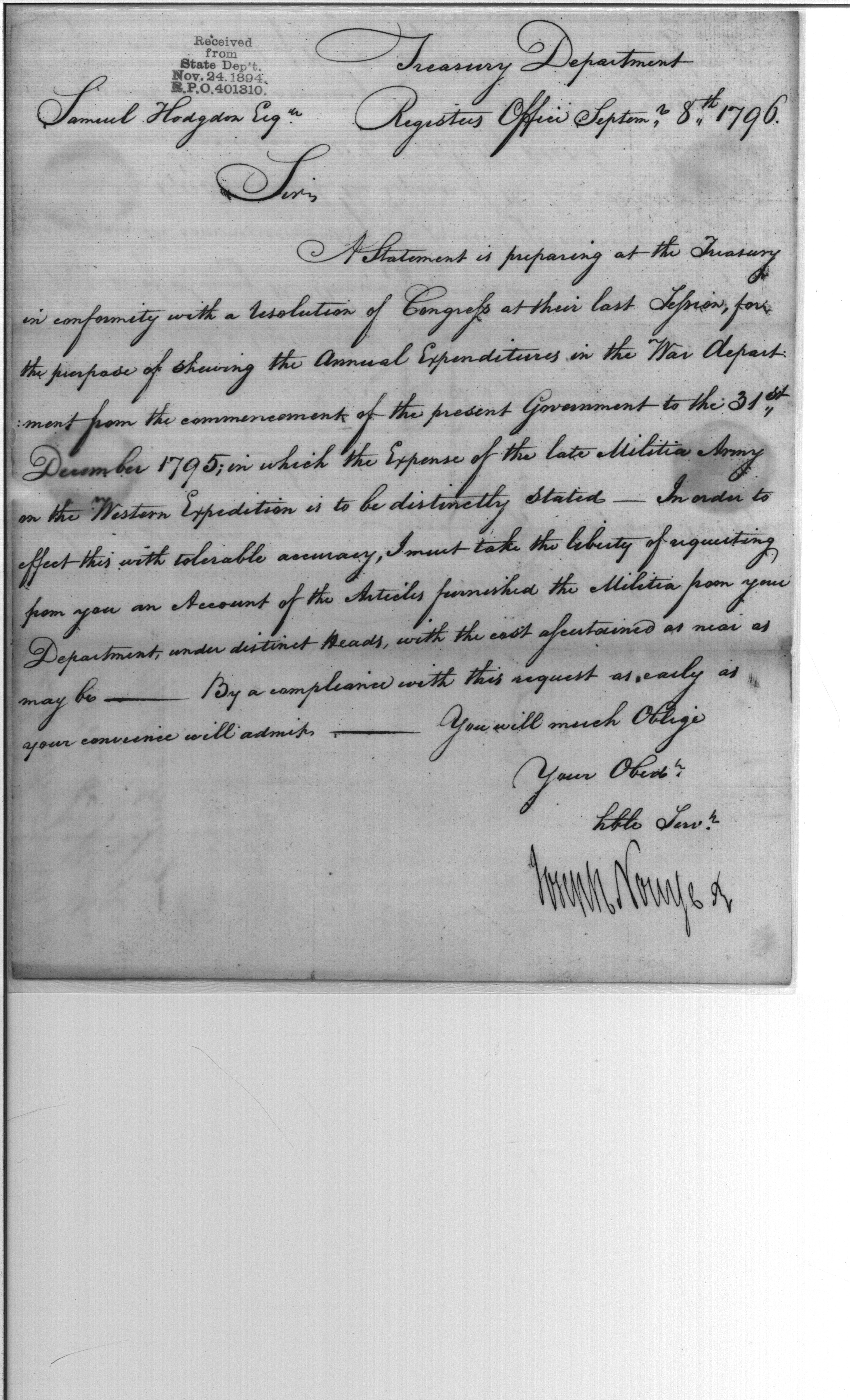 - Document: Expense of the Late Militia Army