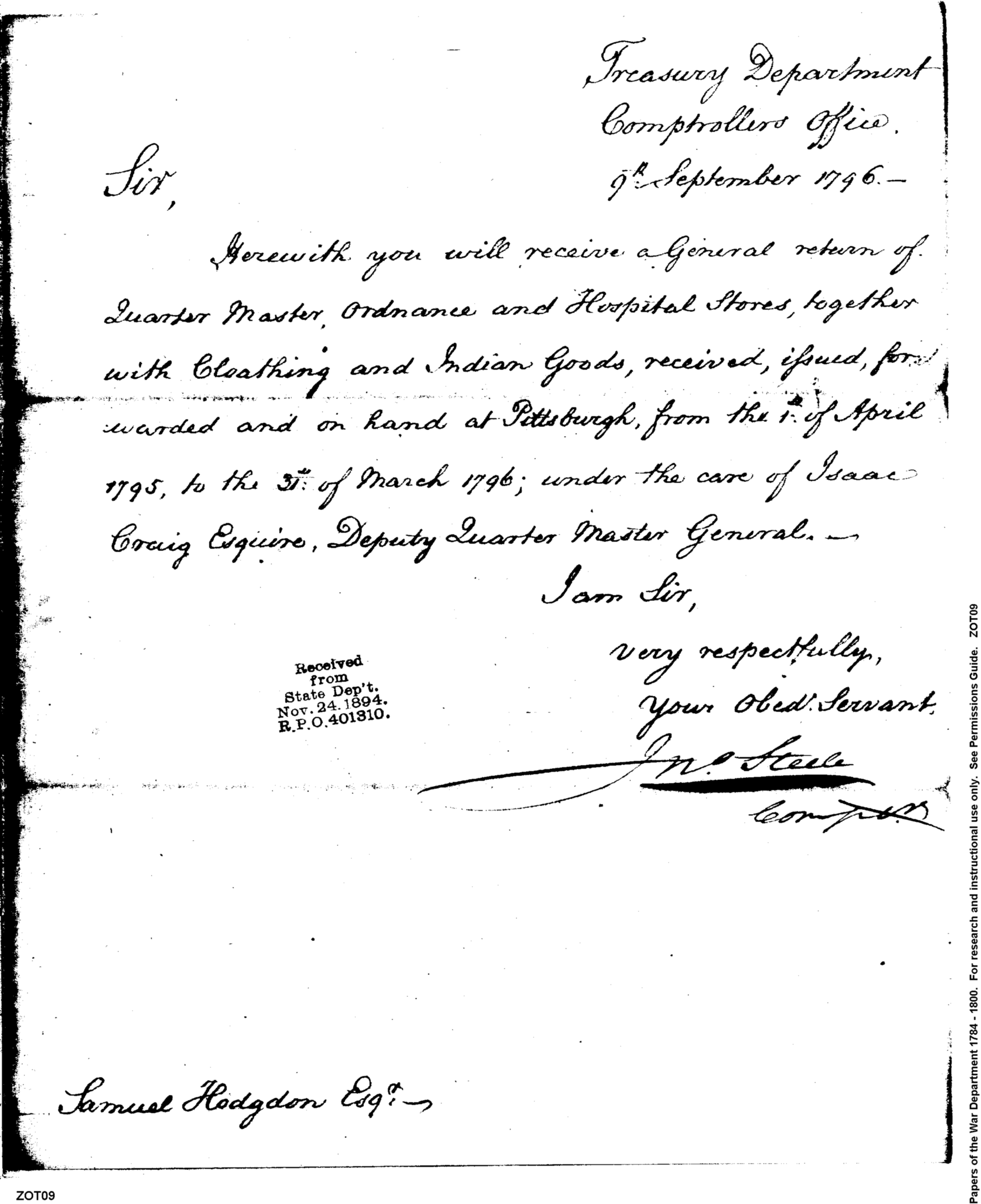 - In source: Collection: Post Revolutionary War Papers, 1784-1815. (RG94)