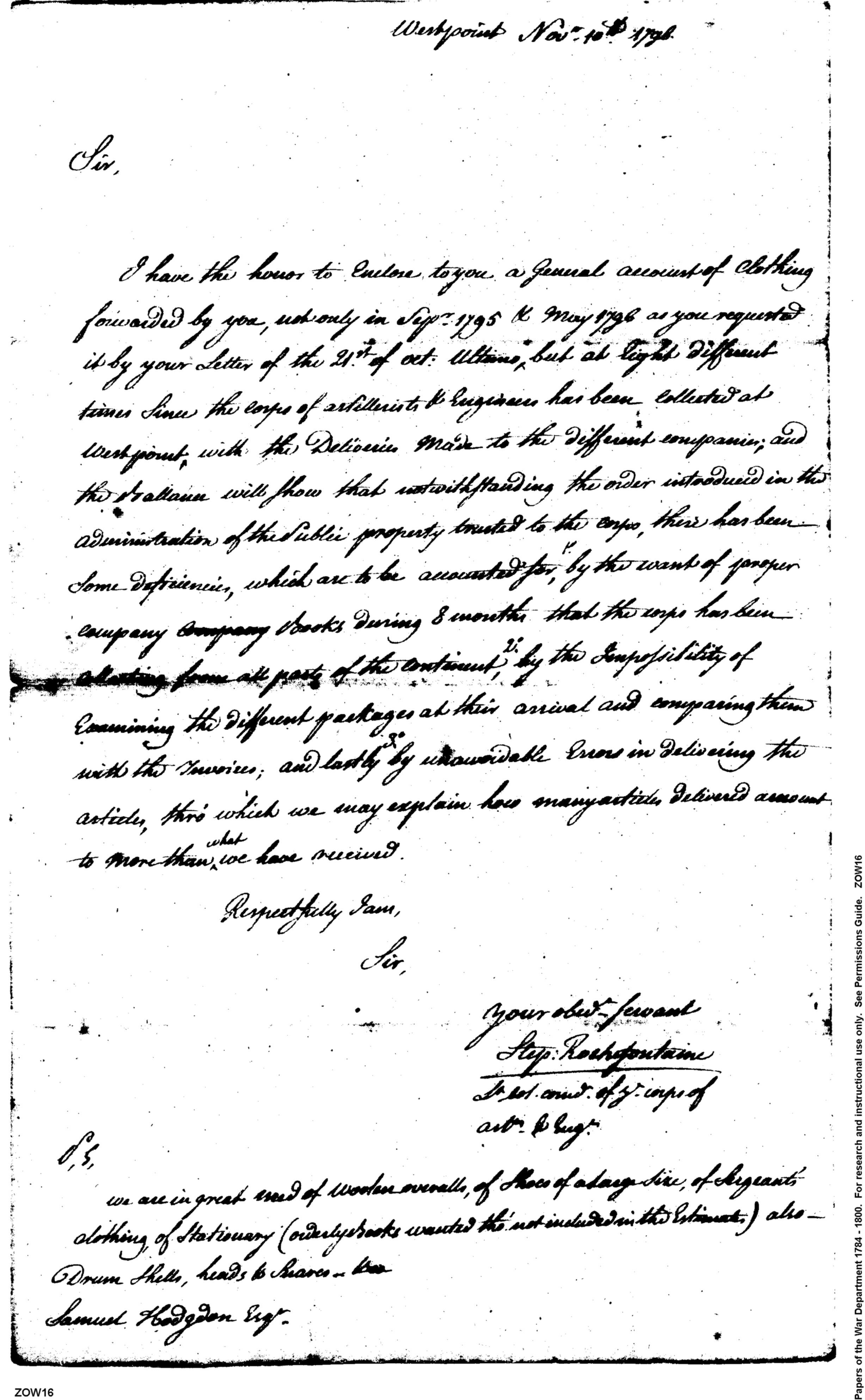- In source: Collection: Post Revolutionary War Papers, 1784-1815. (RG94)