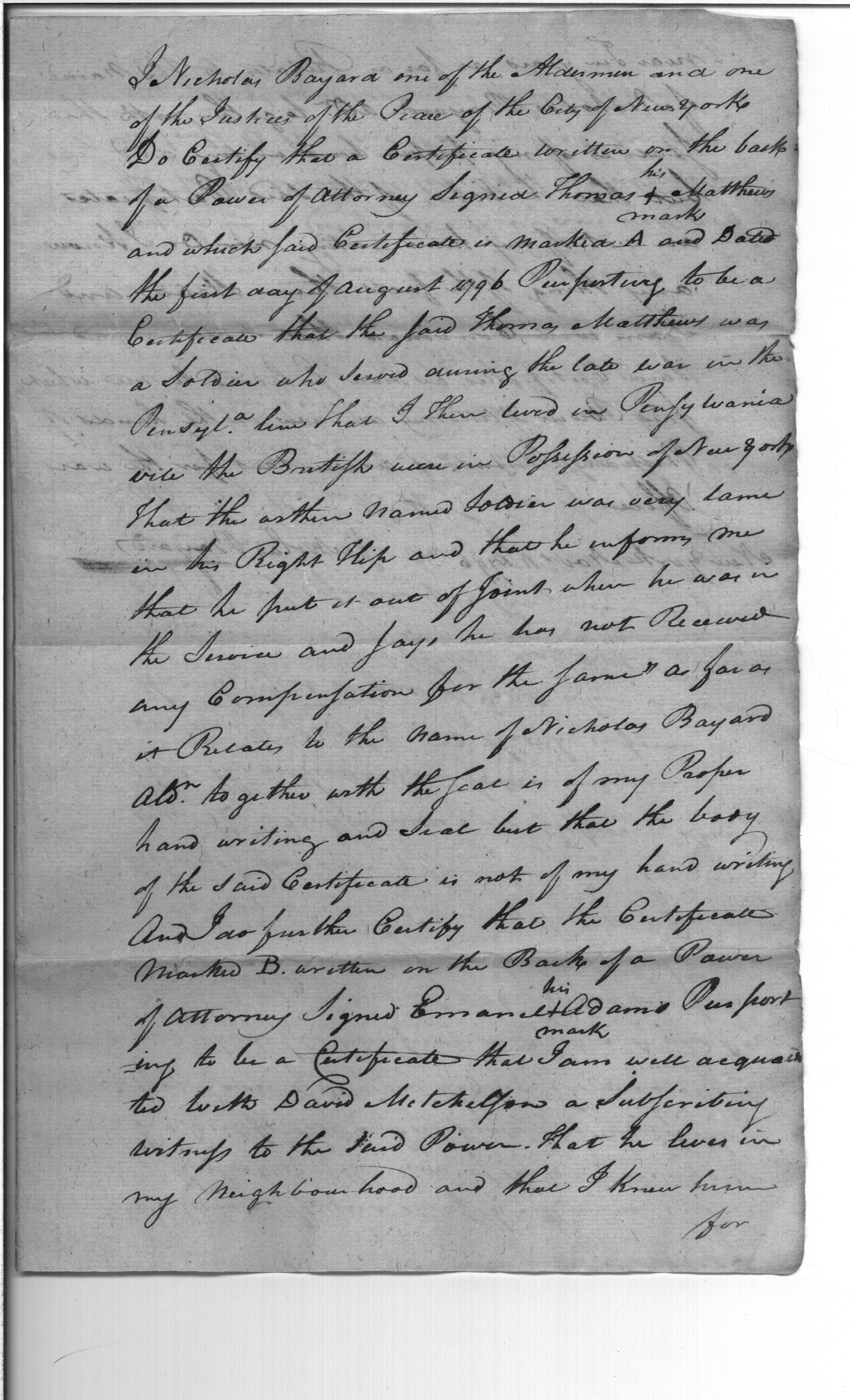 - Document: Certificate of Nicholas Bayard