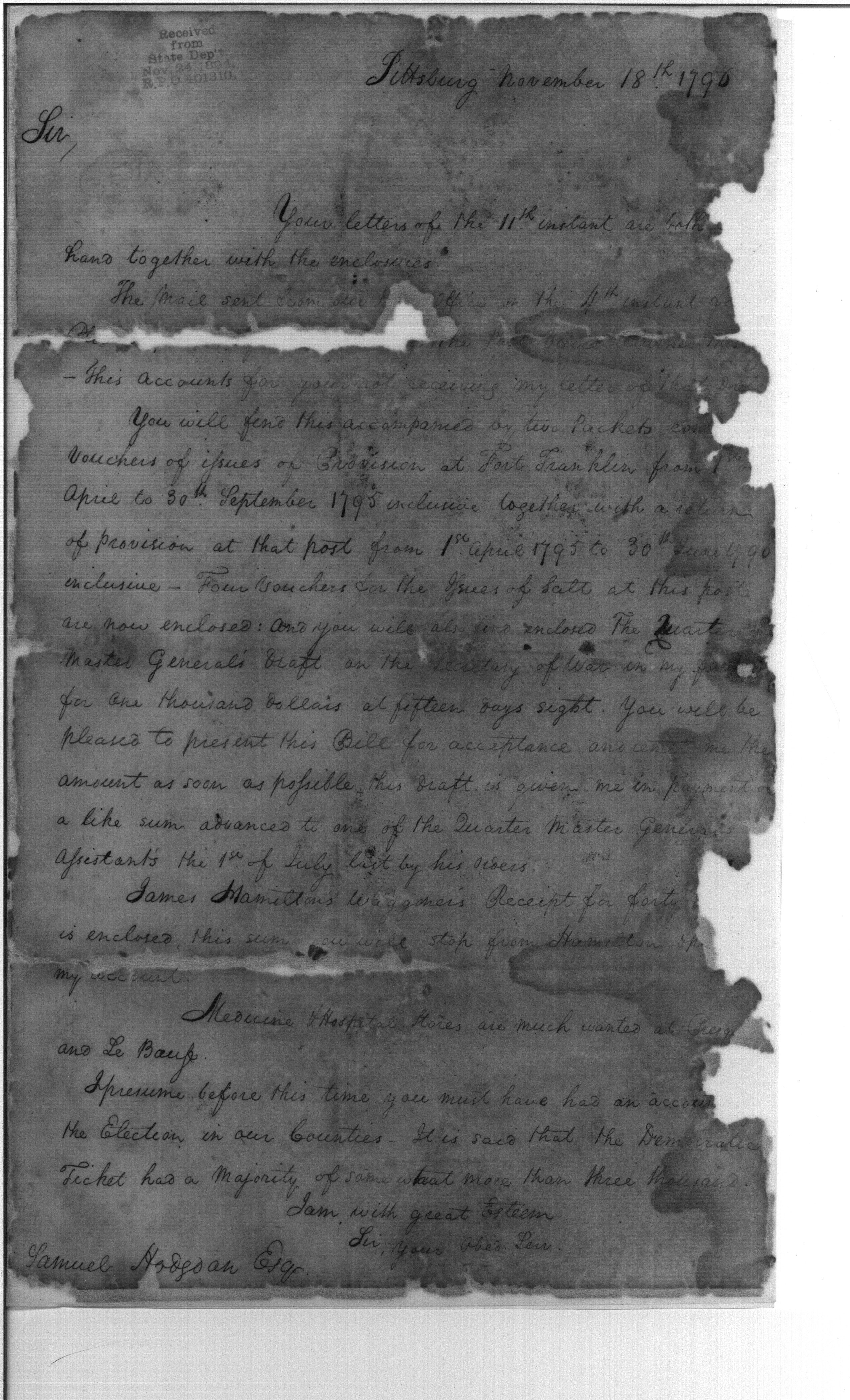 Military Stores, Bills, Elections