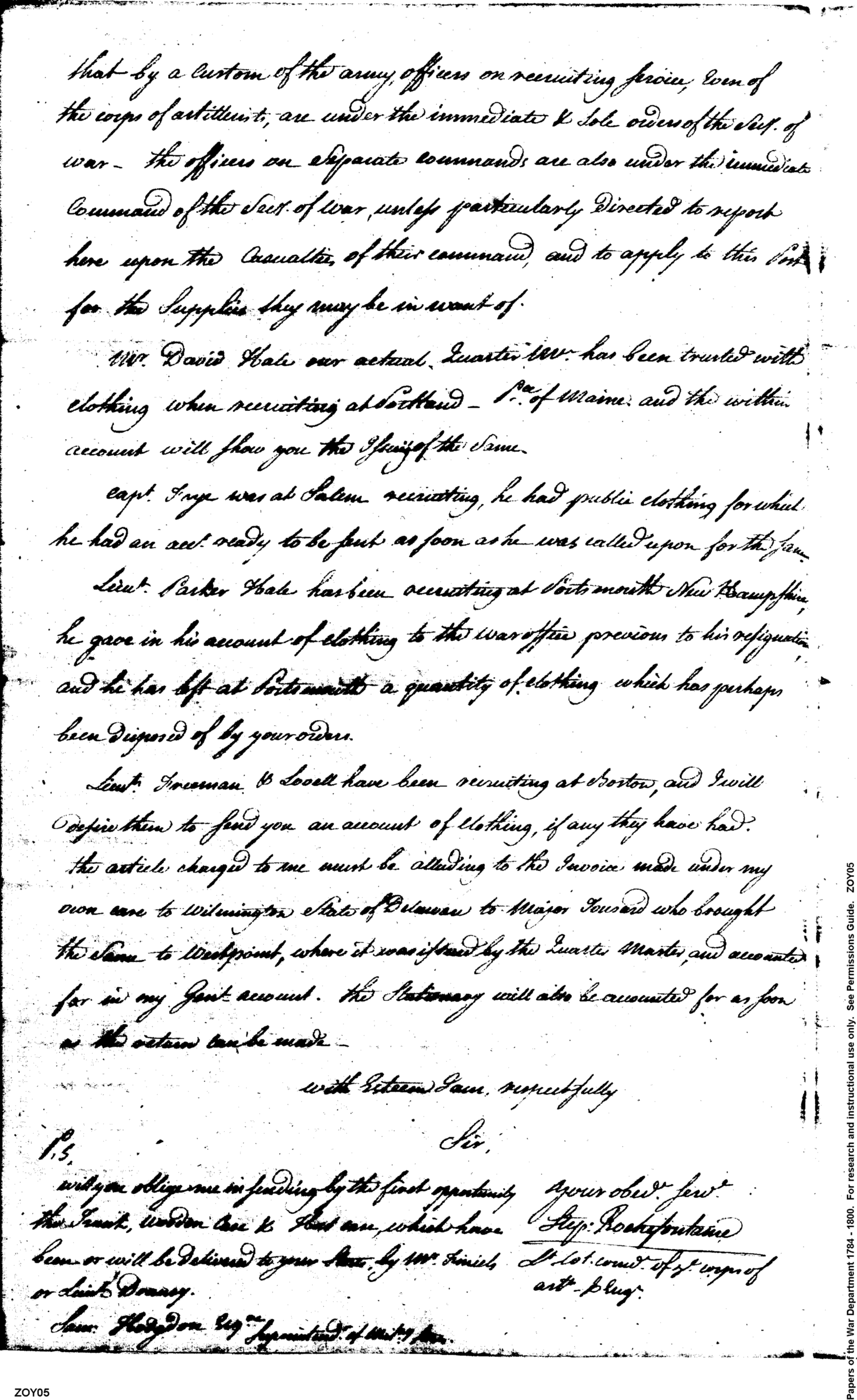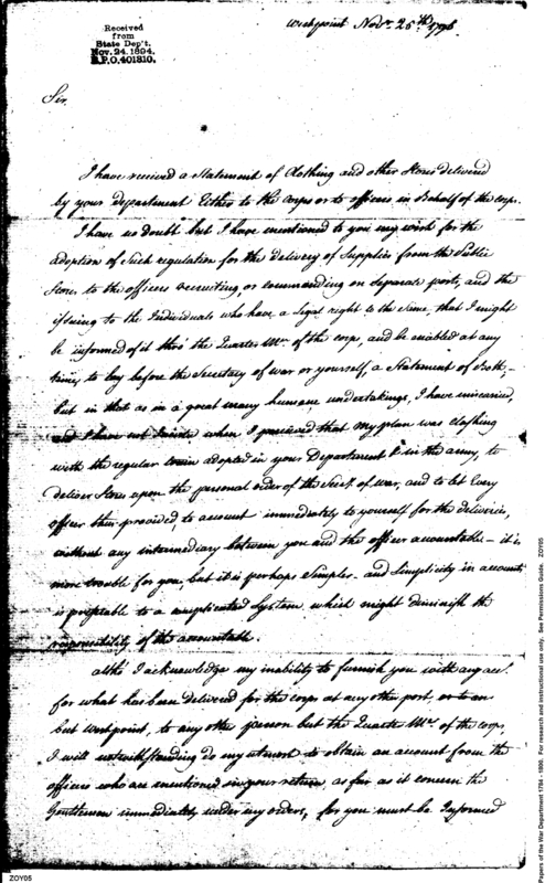 - In source: Collection: Post Revolutionary War Papers, 1784-1815. (RG94)