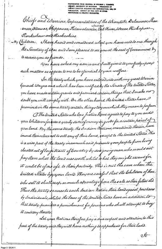 Document ViewerWashington's Speech to the Indians on How to Honor the Treaty of Greeneville