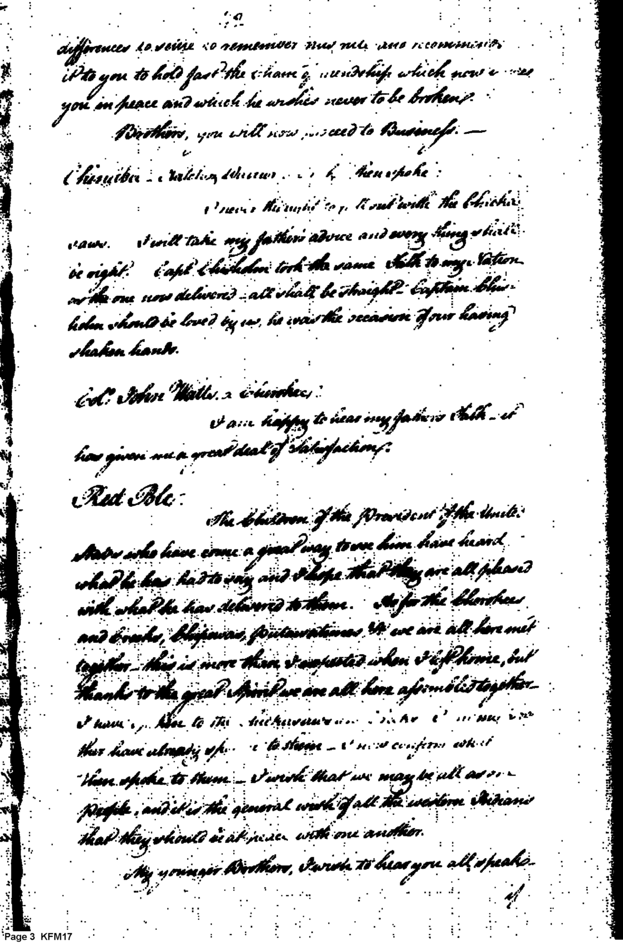 - Document: Speech to the Indians from the Secretary at War, Urging Peace into the Future, and Replies
