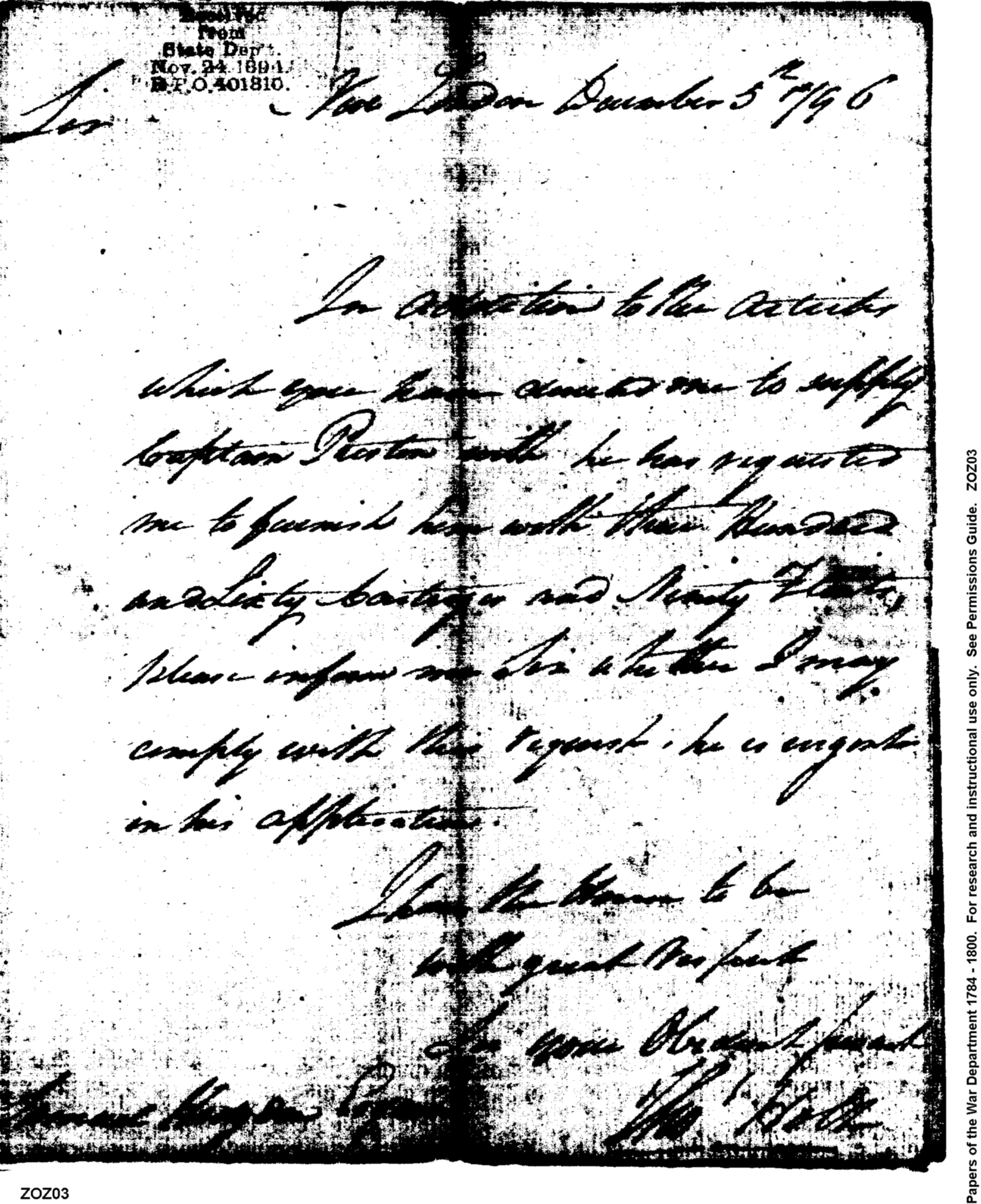 - In source: Collection: Post Revolutionary War Papers, 1784-1815. (RG94)