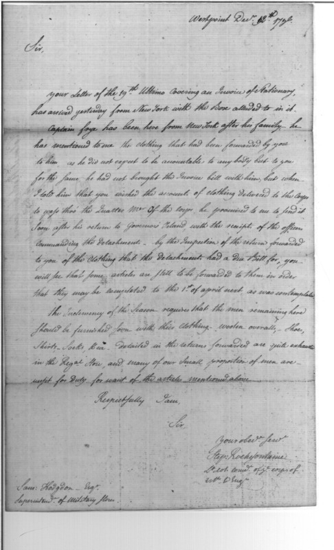 - Document: Proper Clothing for the Corps at West Point, Etc.