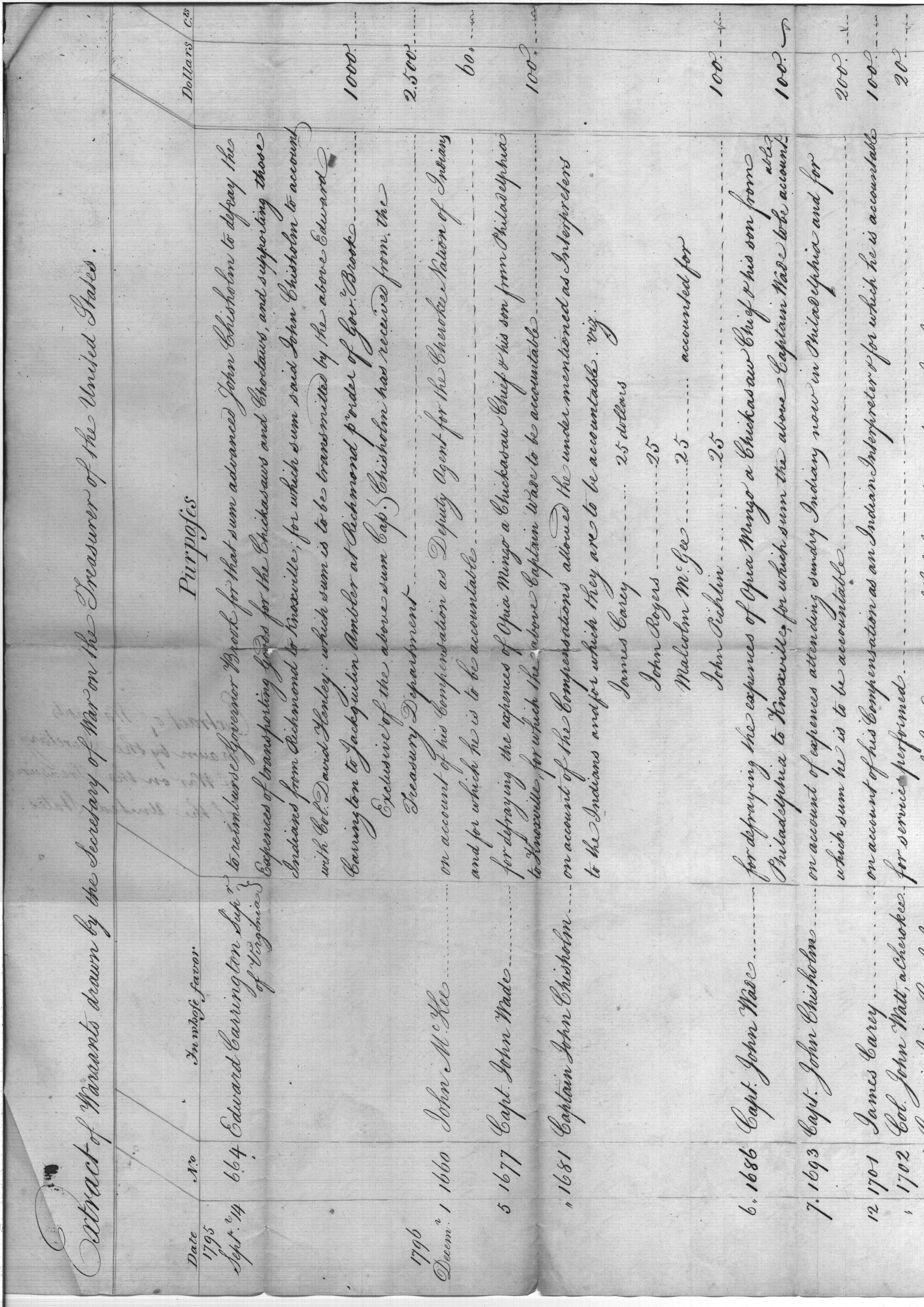- Document: Extract of warrants drawn by the Secretary of War on the Treasurer of the United States.