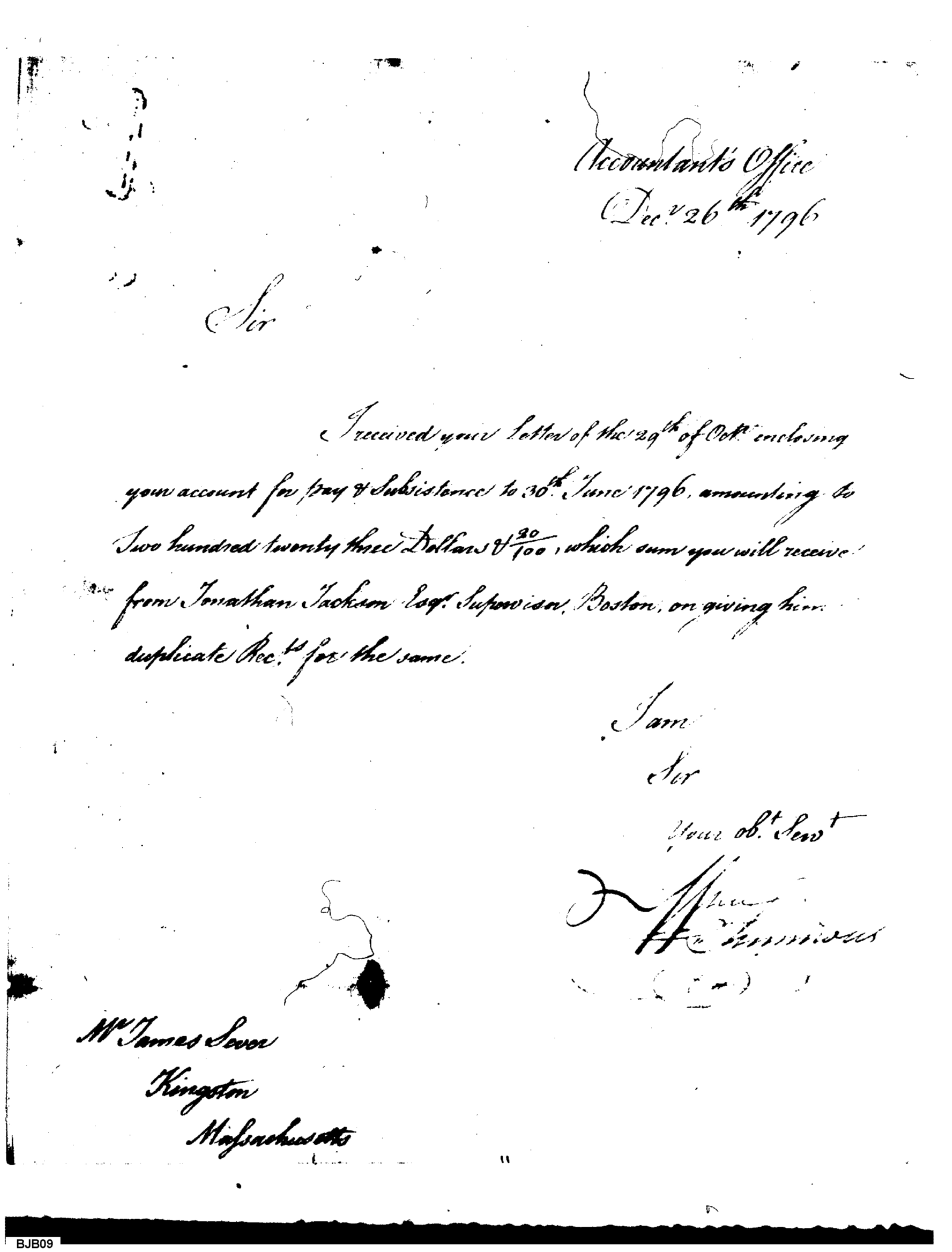 Pay & Subsistence of James Sever