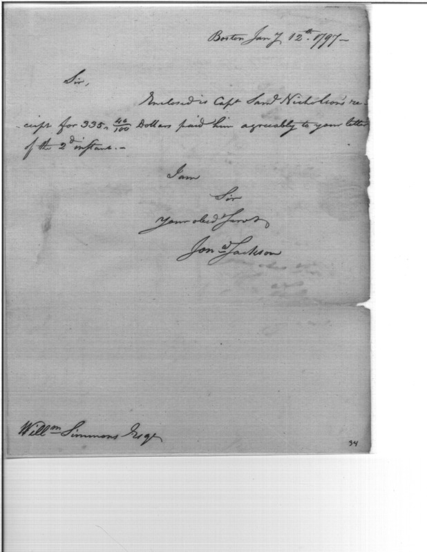 - Document: Enclosed Receipts for Capt. Samuel Nicholson
