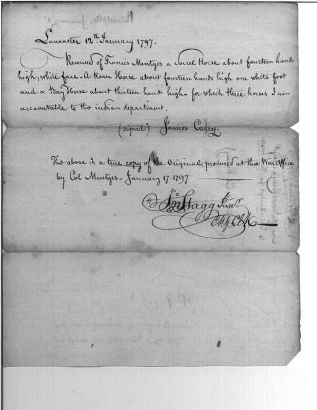 - Document: Receipt of Francis Mentges for sorrel horse