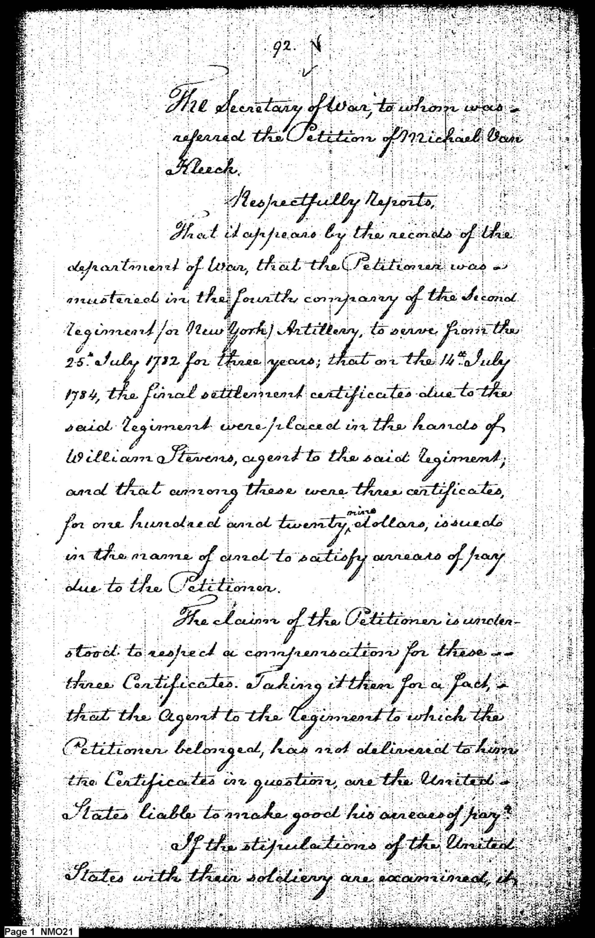 - Document: Petition of Michael Van Kleeck