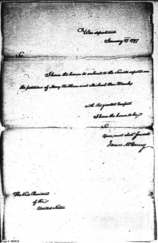 - Document: Report of the Secretary of War on the Petition of Michael Van Kleeck and Mary Hibborn
