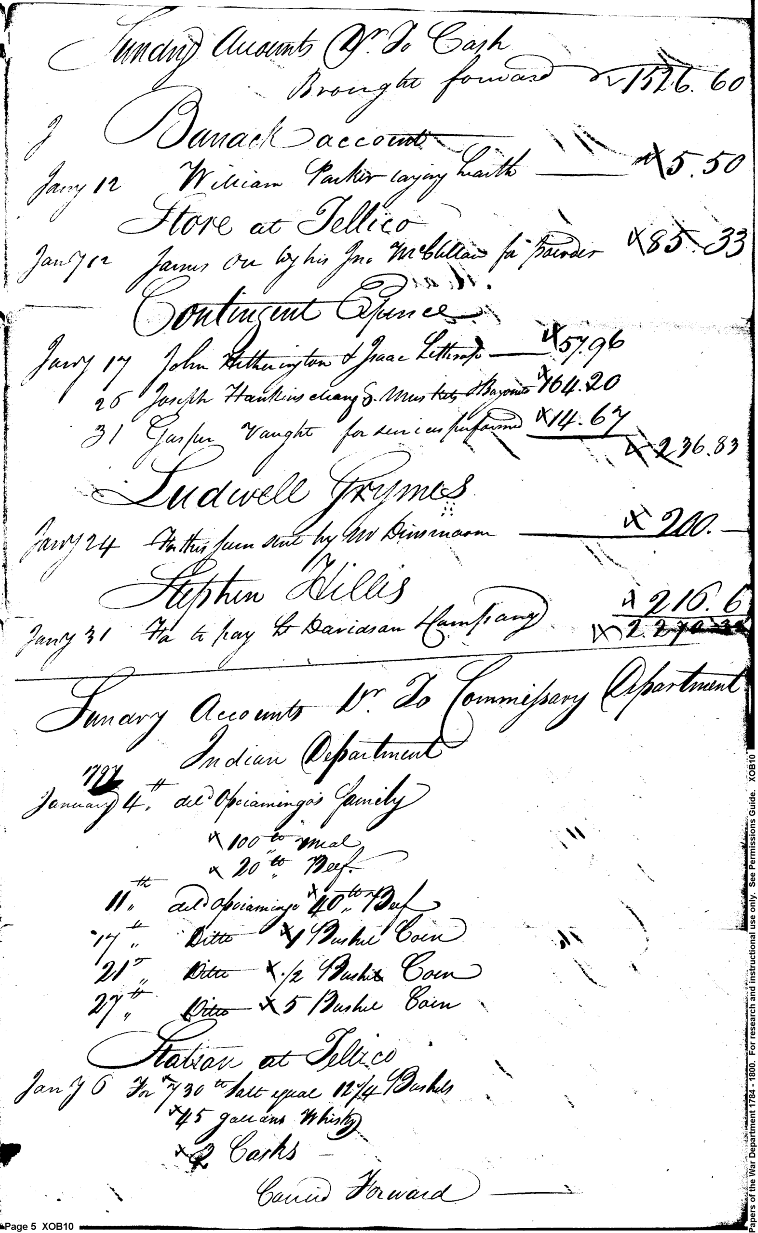 - Document: Summary Accounts for the Commissary Department