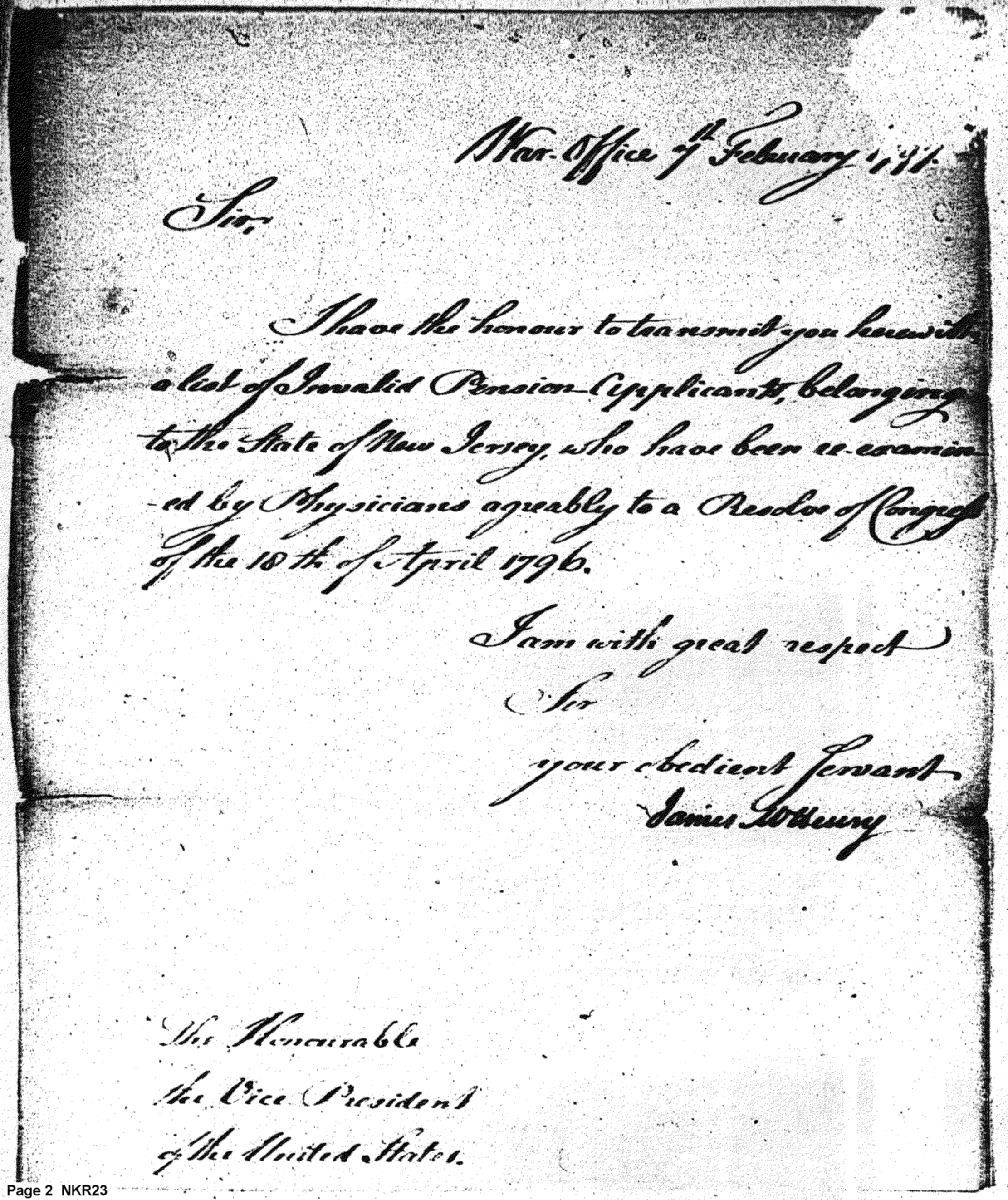 - Document: Cover Letter for List of Invalid Pension Applications