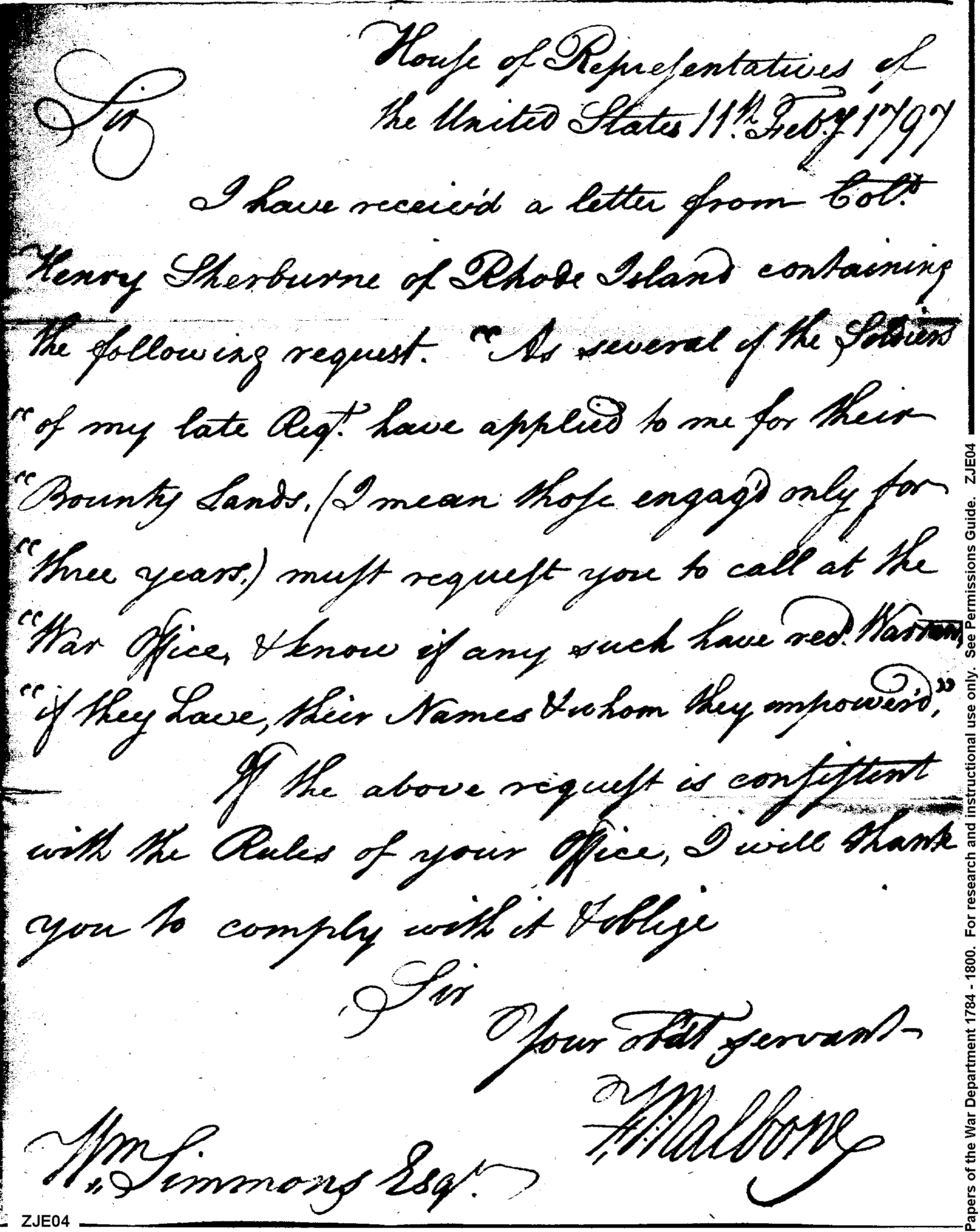 Post Revolutionary War Papers, 1784-1815. (RG94)