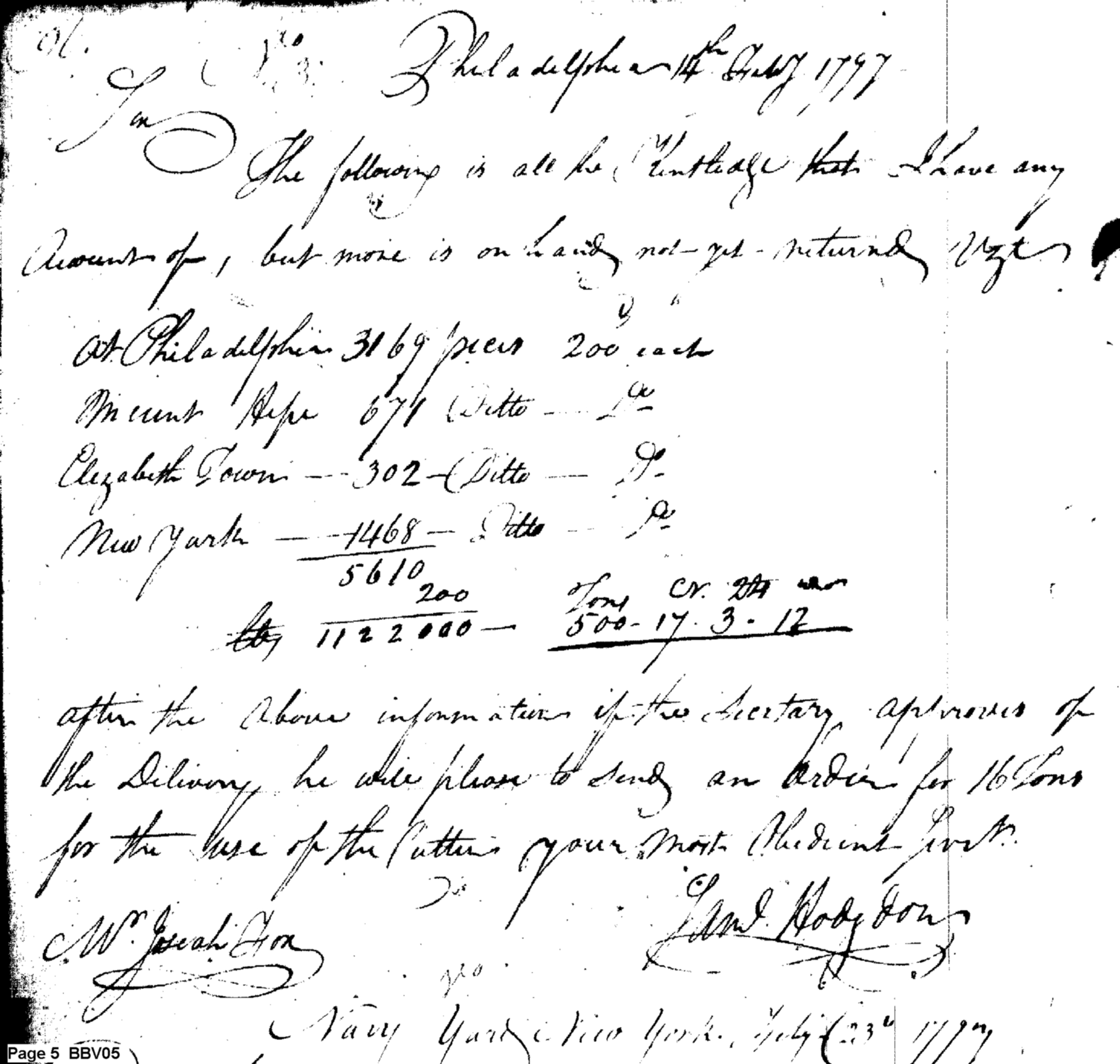 - Document: Statement of Stores of Kentledge [Ballast]; Request for Kentledge for Revenue Cutter