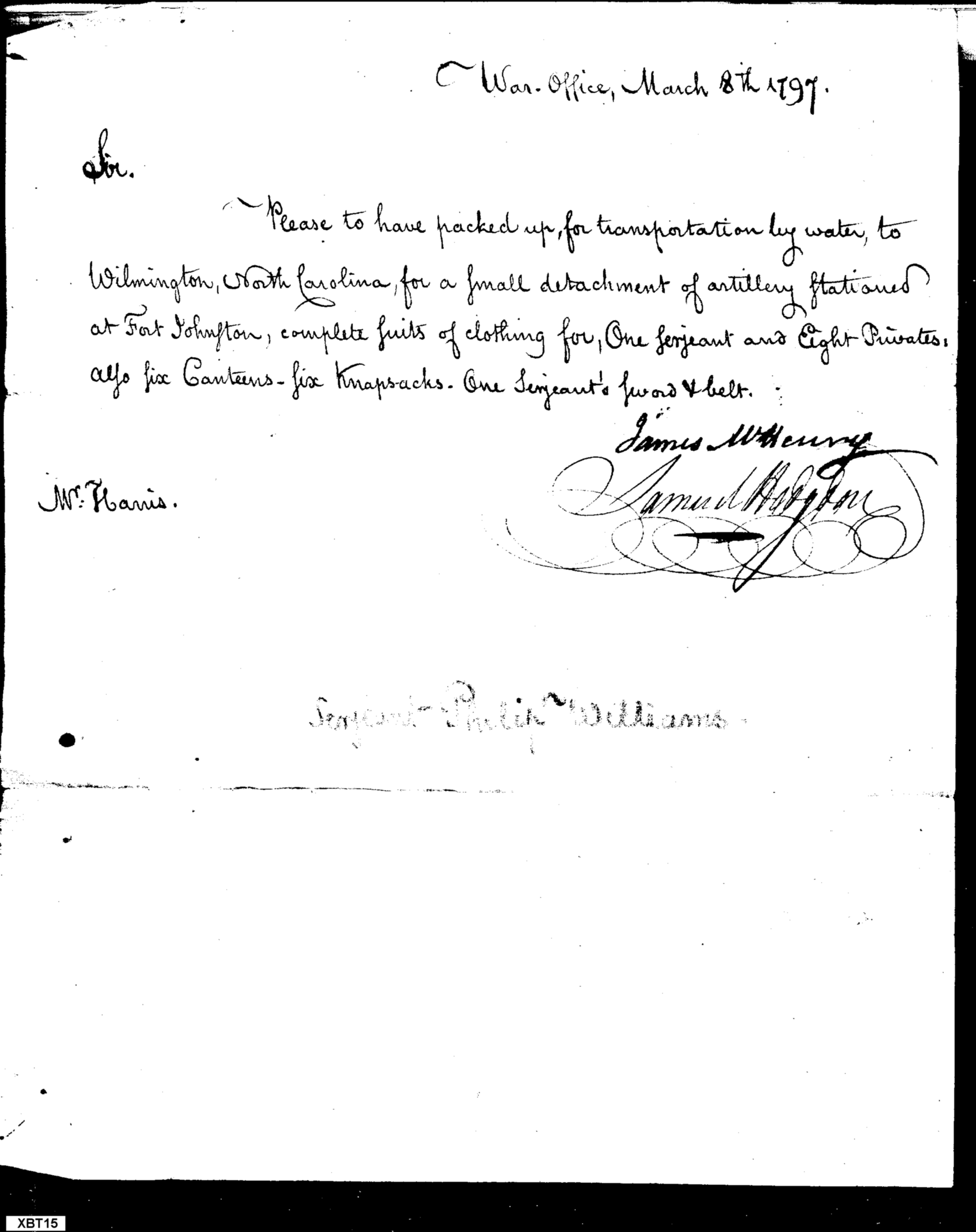 - Document: Request for Delivery of Supplies to Artillerists Near Wilmington, N.C.