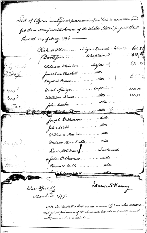 Post Revolutionary War Papers, 1784-1815. (RG94)