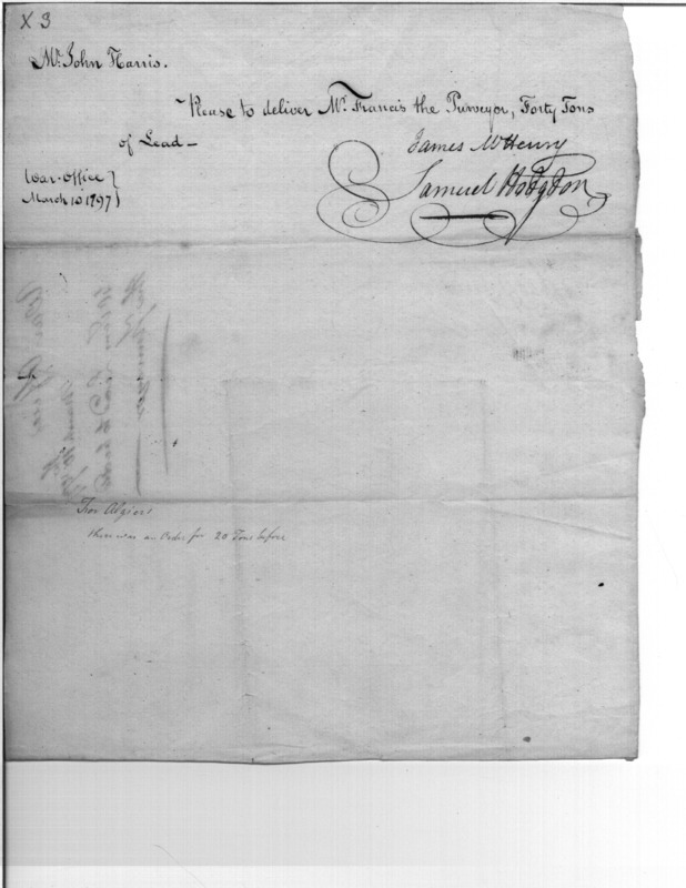 - Document: Forty Tons of Lead to Tench Francis