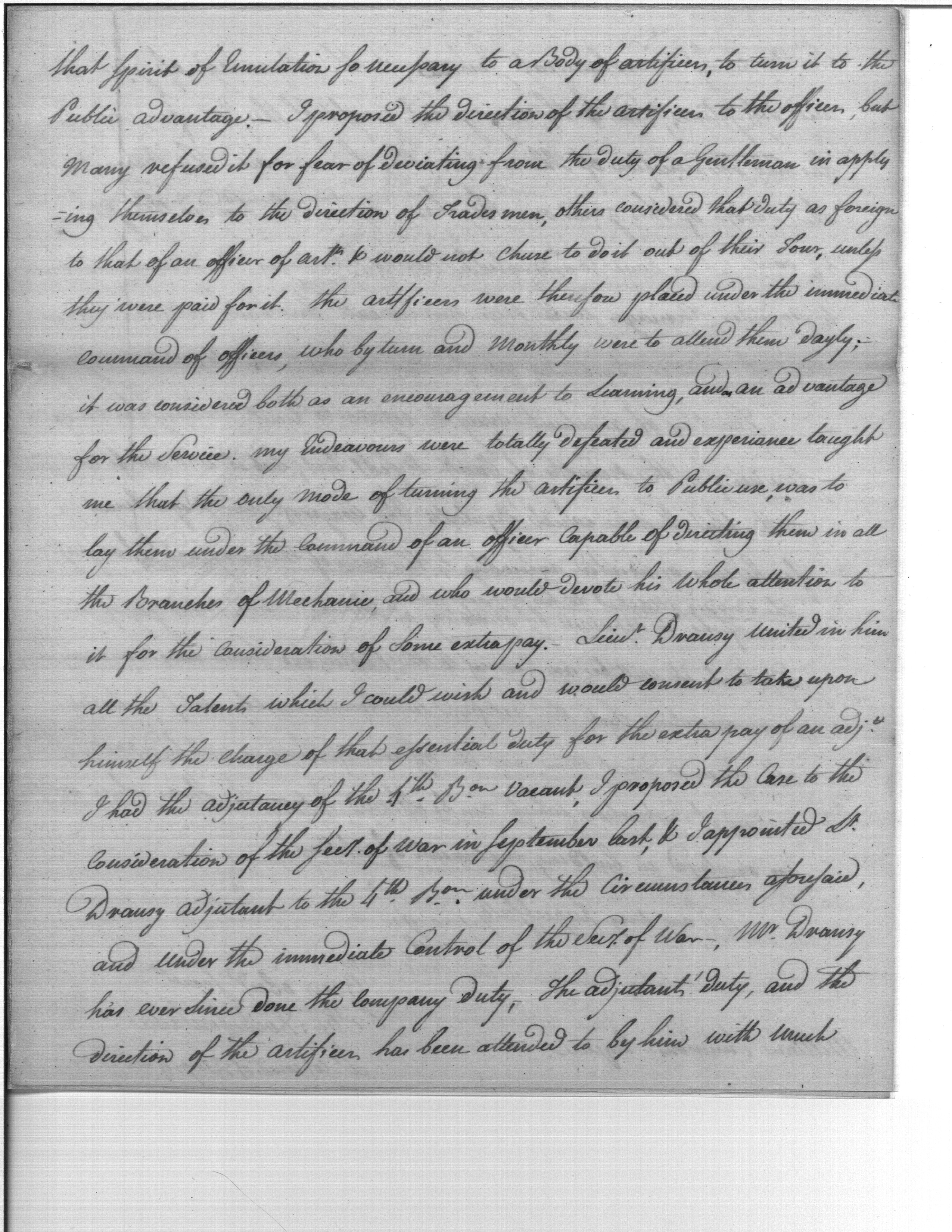 - Document: Support for Extra Pay of Mr. Dransy, Adj. Gen. of Artificers