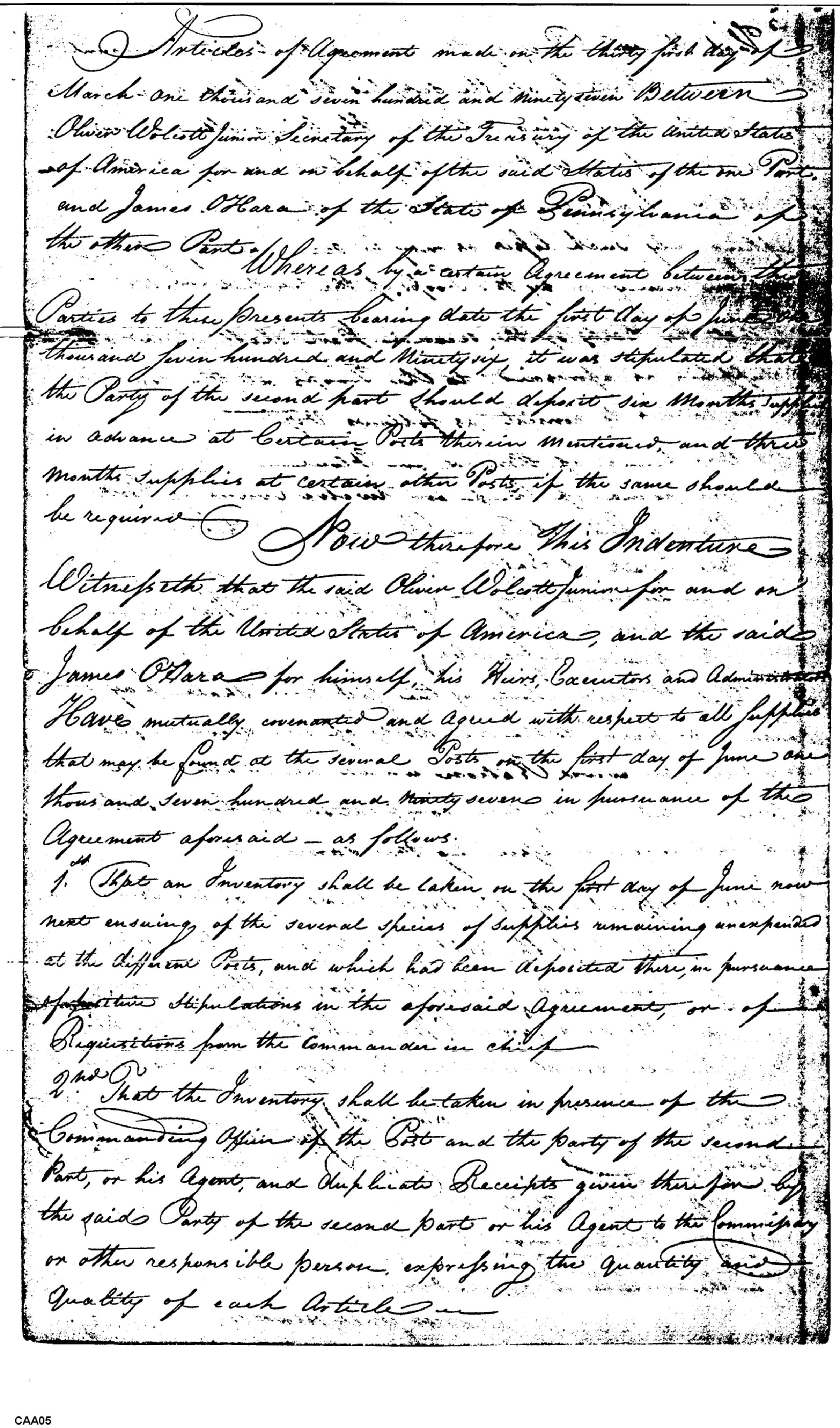 - Document: Articles of Agreement between Oliver Wolcott, Jr. and James O'Hara.