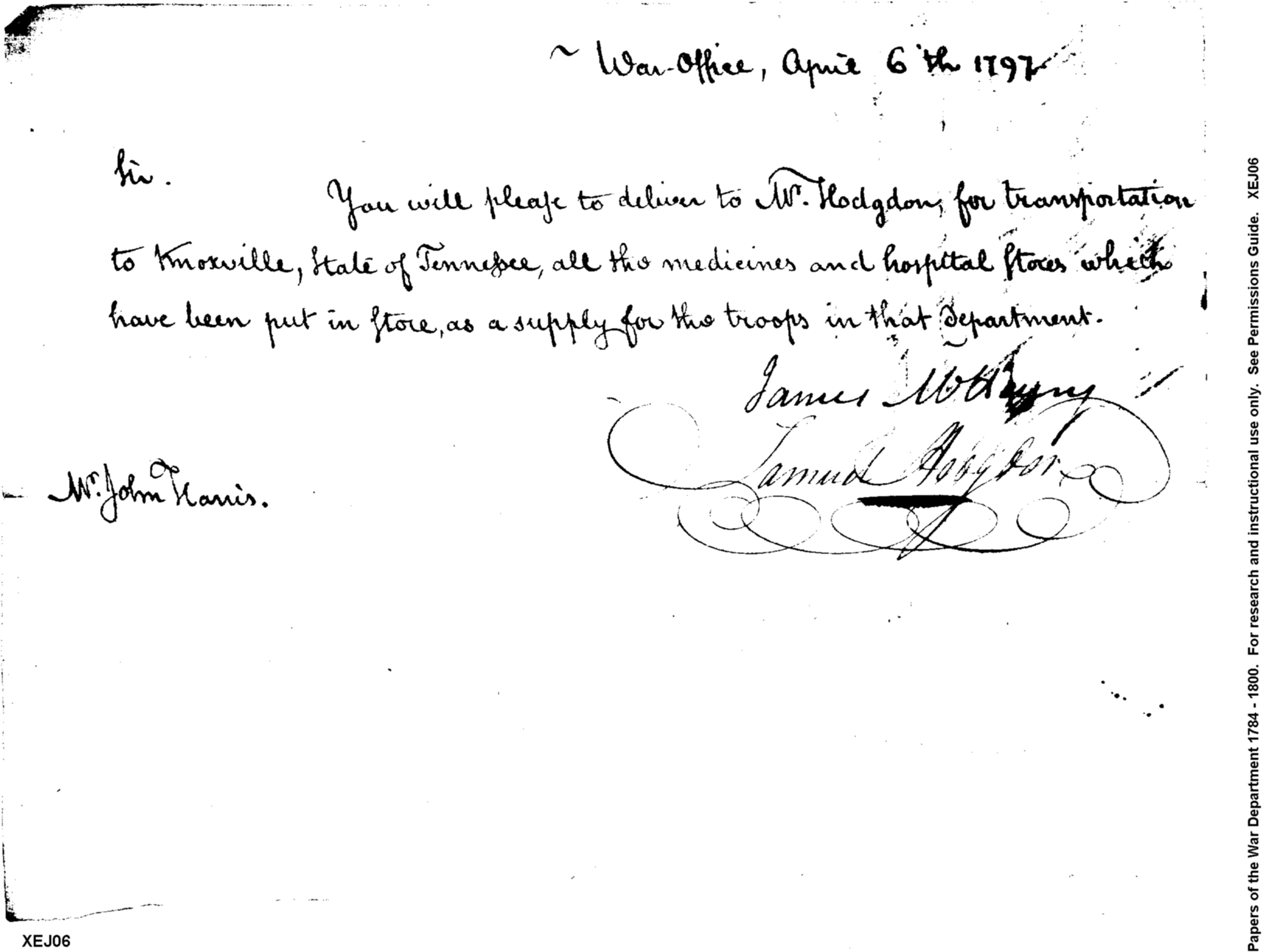 - In source: Collection: Correspondence, Reports, Returns, Bills, Accounts Current' Statements, Receipts, Vouchers and Contracts of Philadelphia Supply Agencies (Coxe and Irvine Papers), 1794-1842. (RG92)