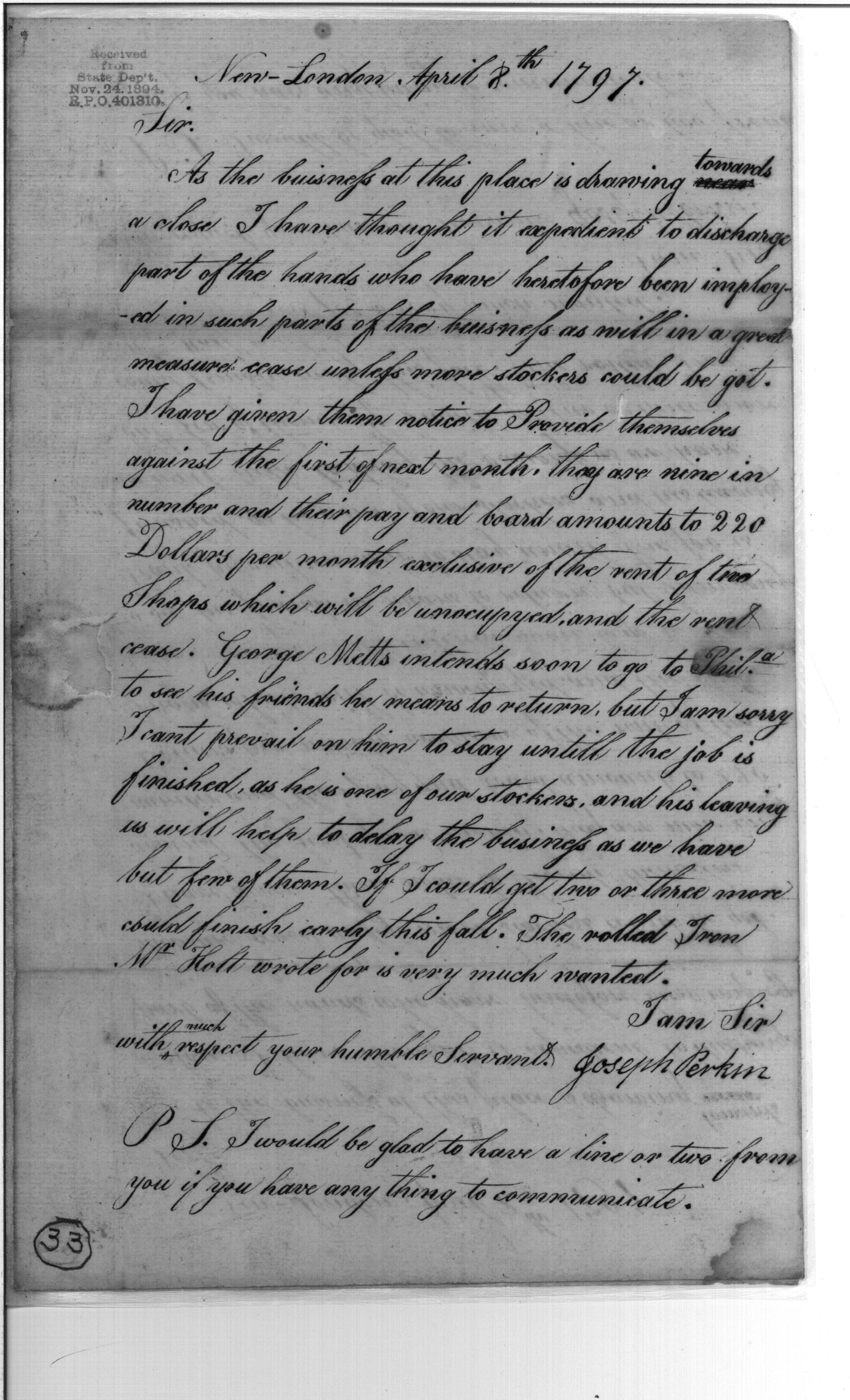 Discharging Hands, Etc.