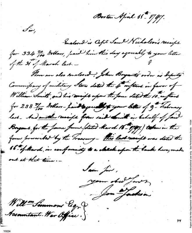 - Document: Enclosed Receipts of Capt. Nichson and Order of Bryant
