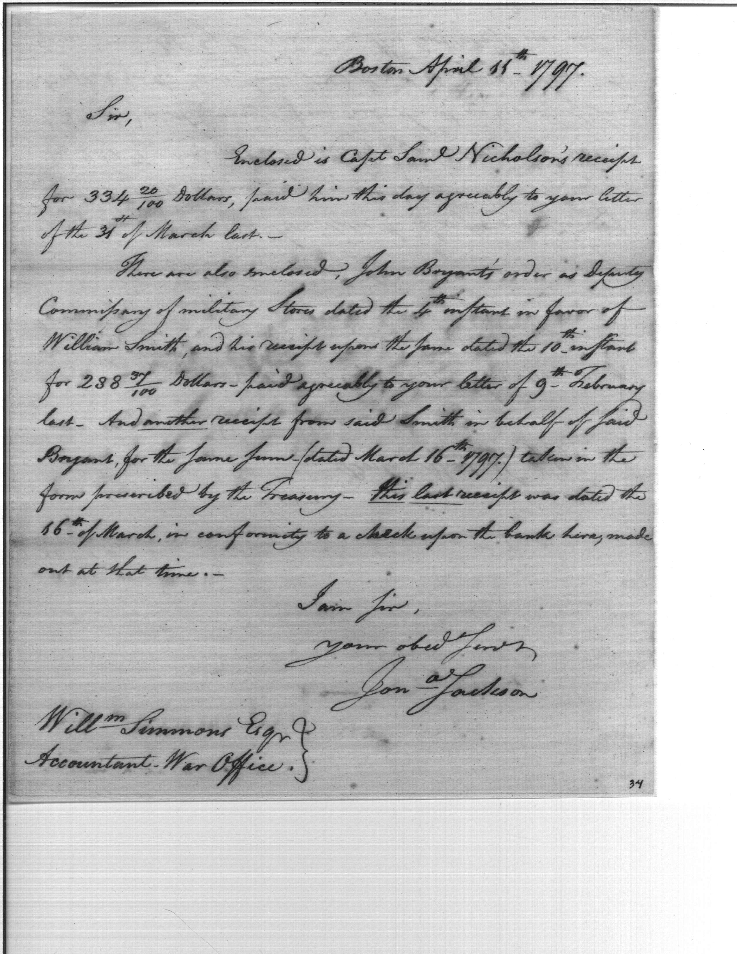 - Document: Enclosed Receipts of Capt. Nichson and Order of Bryant