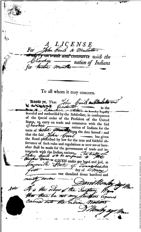 - Document: License for John Civils to Trade with the Cherokee Nation
