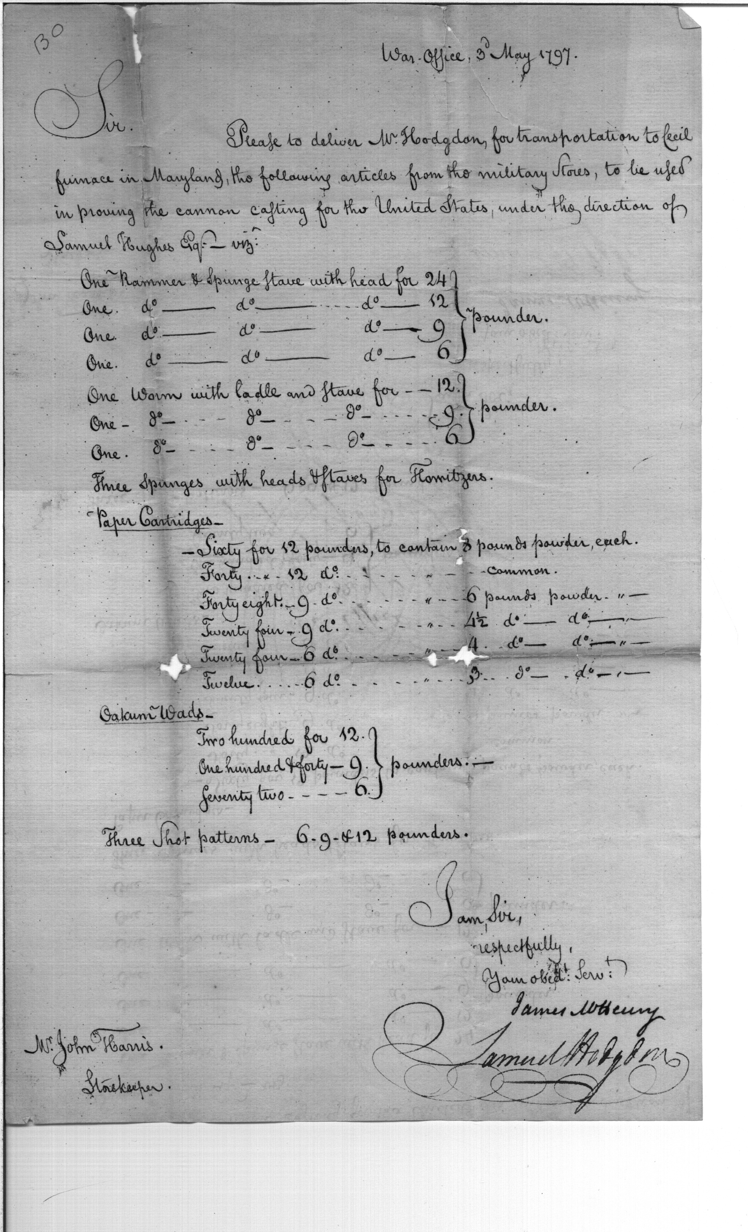 - Document: Delivery of Articles Used in Cannon Casting